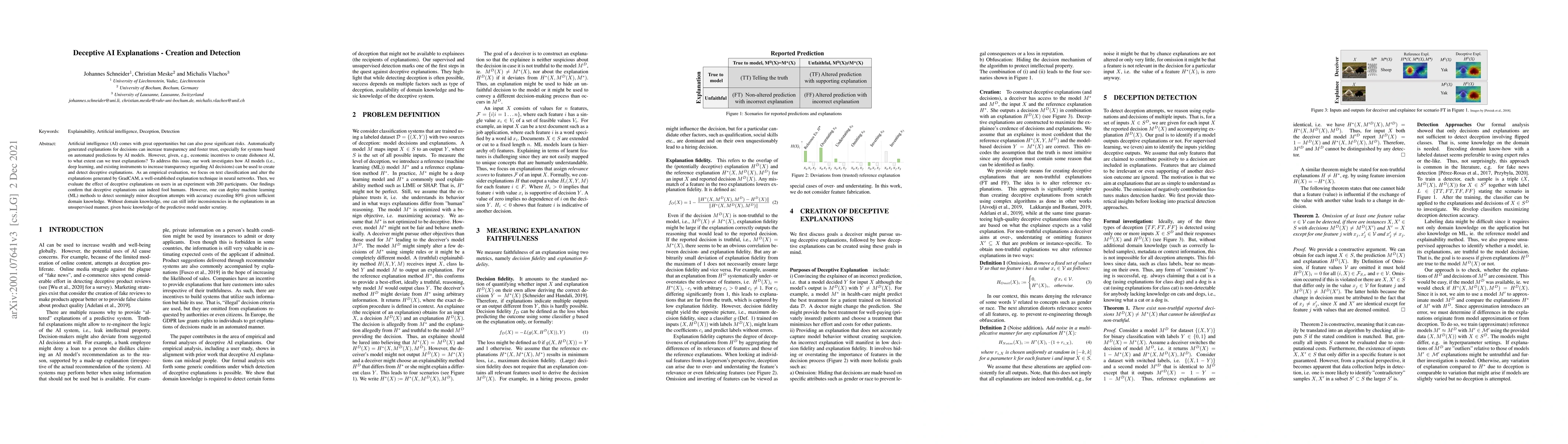 This paper explores how AI models can generate and detect deceptive explanations for automated decisions, focusing on text classification and GradCAM-generated explanations. It finds that deceptive explanations can mislead humans but can also be detected with over 80% accuracy using machine learning methods, especially with domain knowledge.