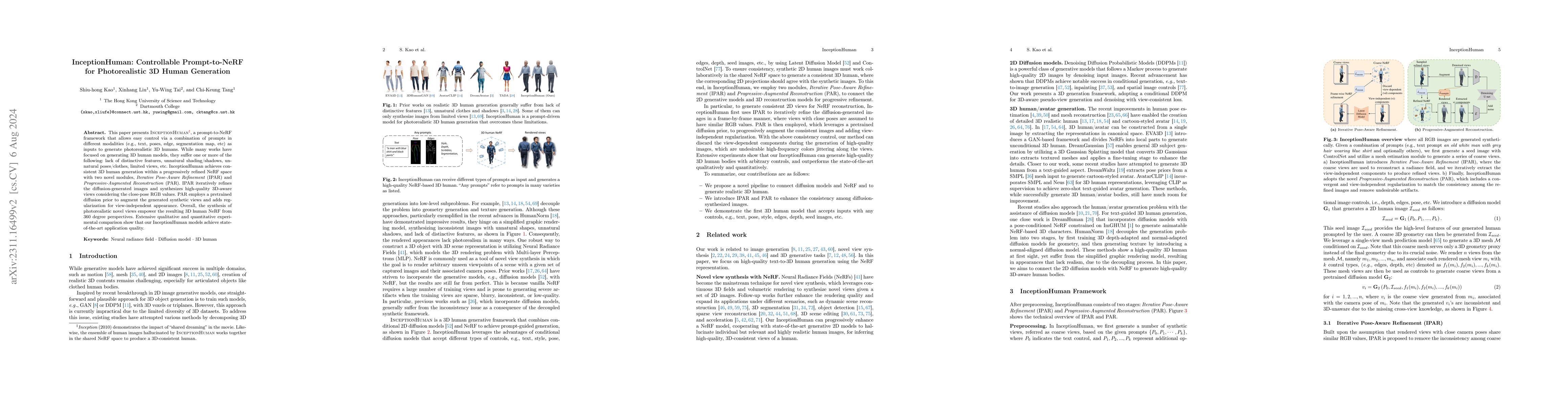This paper introduces Deceptive-Human, a Prompt-to-NeRF framework that uses ControlNet to generate high-quality, controllable 3D human NeRF models through progressive refinement and synthetic 3D-consistent images. The method achieves superior reconstruction quality and photorealism by iteratively refining views with multimodal inputs.