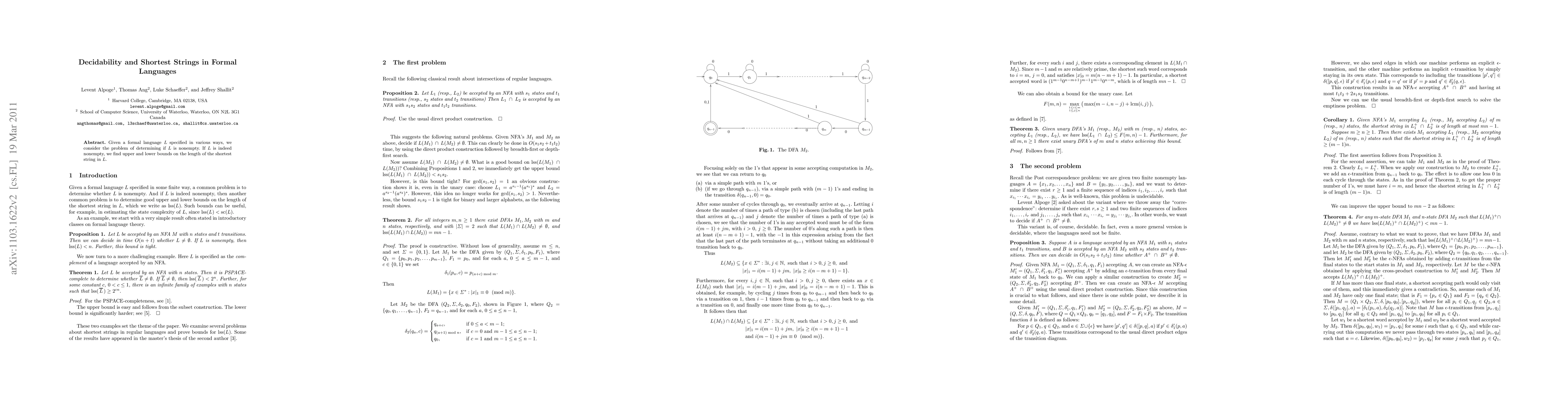 Given a formal language L specified in various ways, we consider the problem of determining if L is nonempty. If L is indeed nonempty, we find upper and lower bounds on the length of the shortest string in L.