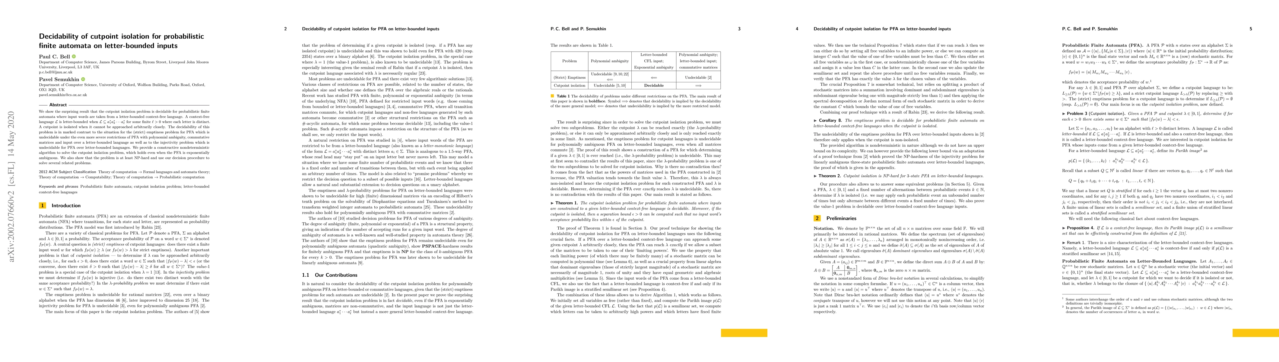 This paper demonstrates the decidability of the cutpoint isolation problem for Probabilistic Finite Automata (PFA) on letter-bounded inputs, contrasting with the undecidability of related problems. The authors provide a constructive algorithm to solve this problem, showing it is NP-hard but decidable under the specified constraints.