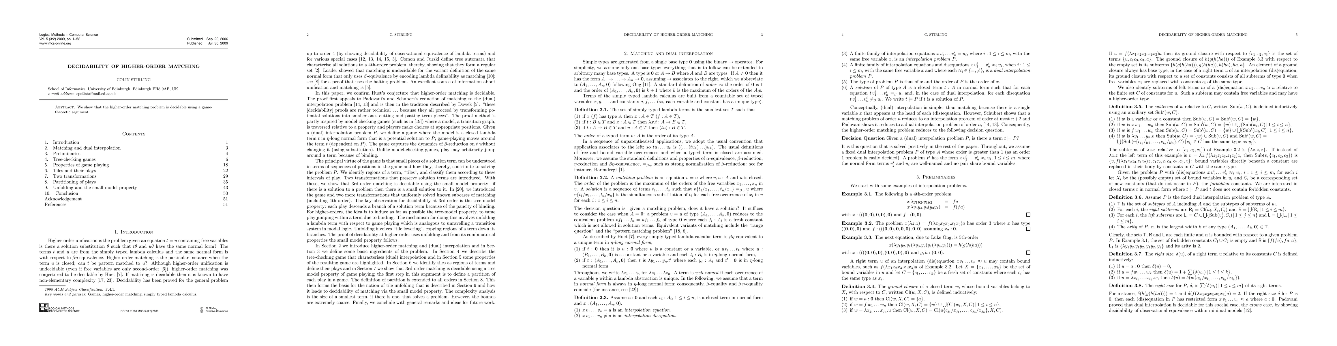 This paper proves that the higher-order matching problem, a complex issue in computational logic, can be solved using a game-theoretic approach, establishing its decidability.