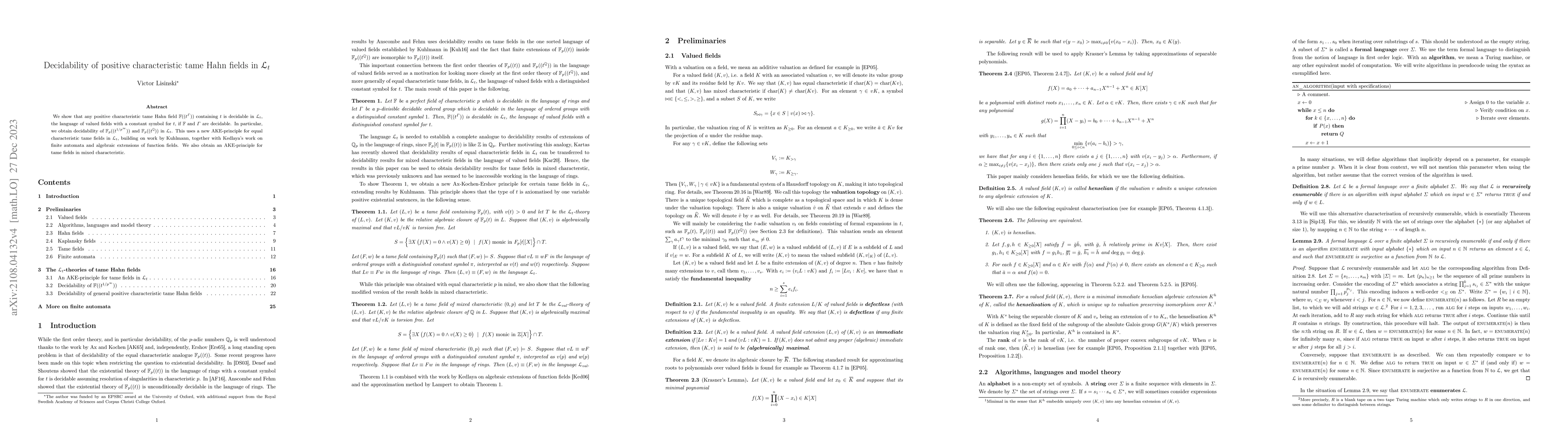 Summary: This paper proves the decidability of positive characteristic tame Hahn fields $\mathbb{F}((t^\Gamma))$ in $\mathcal{L}_t$, provided $\mathbb{F}$ and $\Gamma$ are decidable. It extends to $\mathbb{F}_p((t^{1/p^{\infty}}))$ and $\mathbb{F}_p((t^{\mathbb{Q}}))$, using a new AKE-principle for equal and mixed characteristic tame fields.