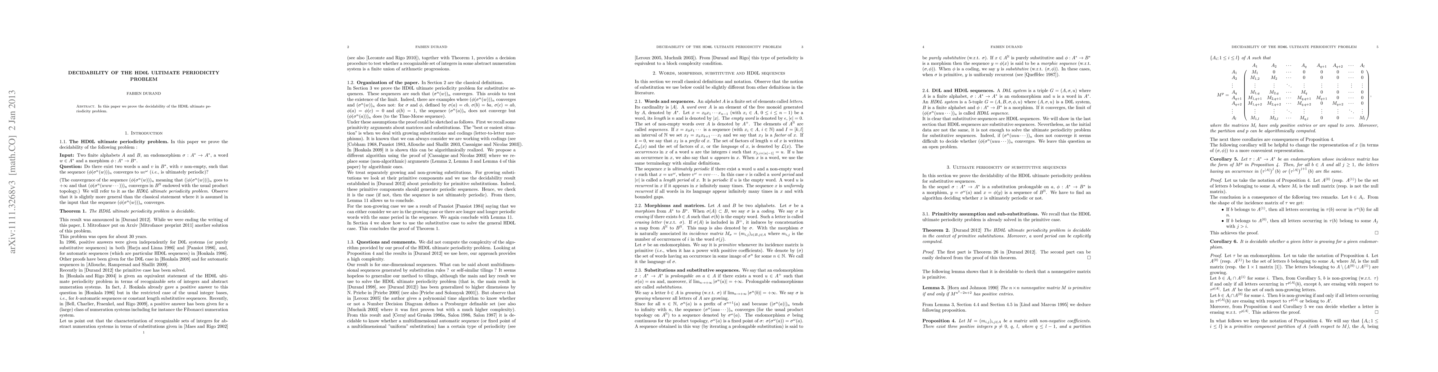 Summary: This research establishes that the ultimate periodicity problem for the HD0L (Hypercubes of Dimension 0 with Loops) system is decidable, providing a method to determine if such systems eventually repeat their behavior. The significance lies in the advancement of understanding for complex dynamical systems.