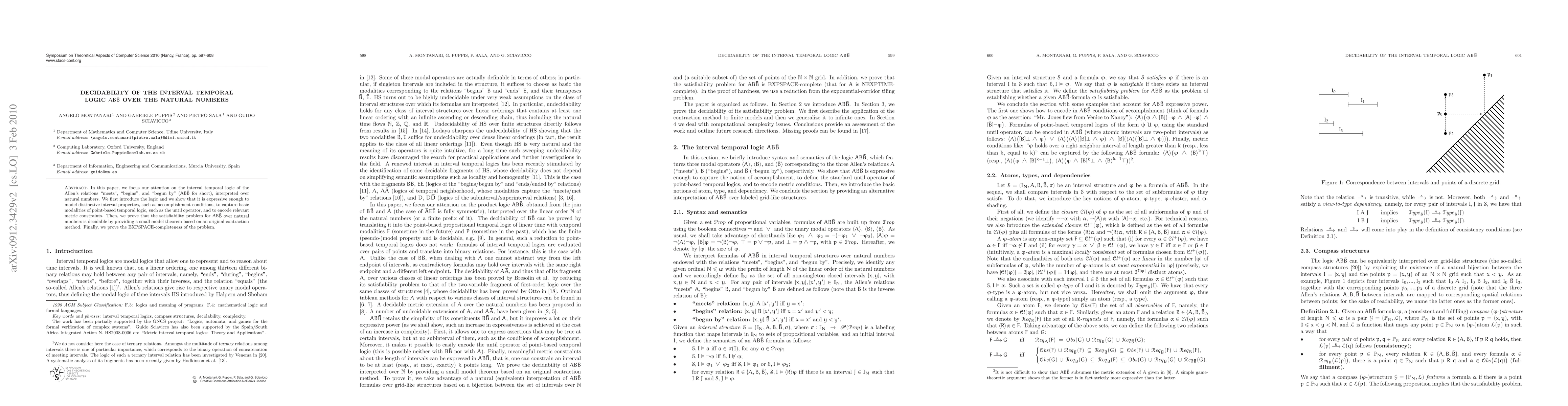 In this paper, we focus our attention on the interval temporal logic of the Allen's relations "meets", "begins", and "begun by" (ABBar for short), interpreted over natural numbers. We first introduce the logic and we show that it is expressive enough to model distinctive interval properties,such as accomplishment conditions, to capture basic modalities of point-based temporal logic, such as the until operator, and to encode relevant metric constraints. Then, we prove that the satisfiability problem for ABBar over natural numbers is decidable by providing a small model theorem based on an original contraction method. Finally, we prove the EXPSPACE-completeness of the problem