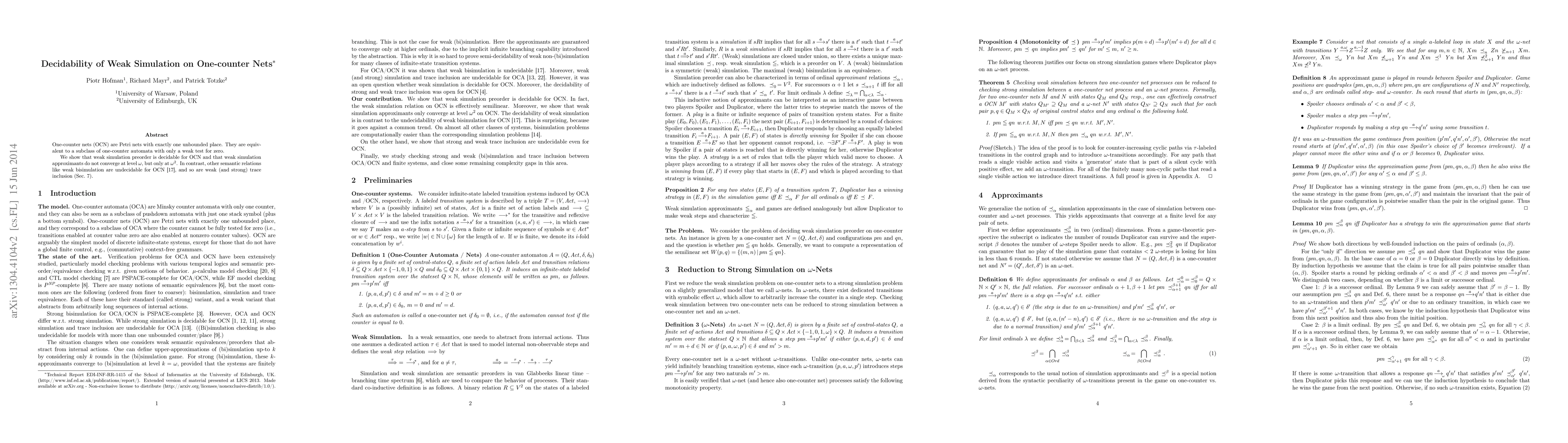 Summary: This paper demonstrates that the weak simulation preorder for one-counter nets (OCN) is decidable, and reveals that weak simulation approximants converge at level omega^2, contrasting with the undecidability of weak bisimulation and trace inclusion for OCN.