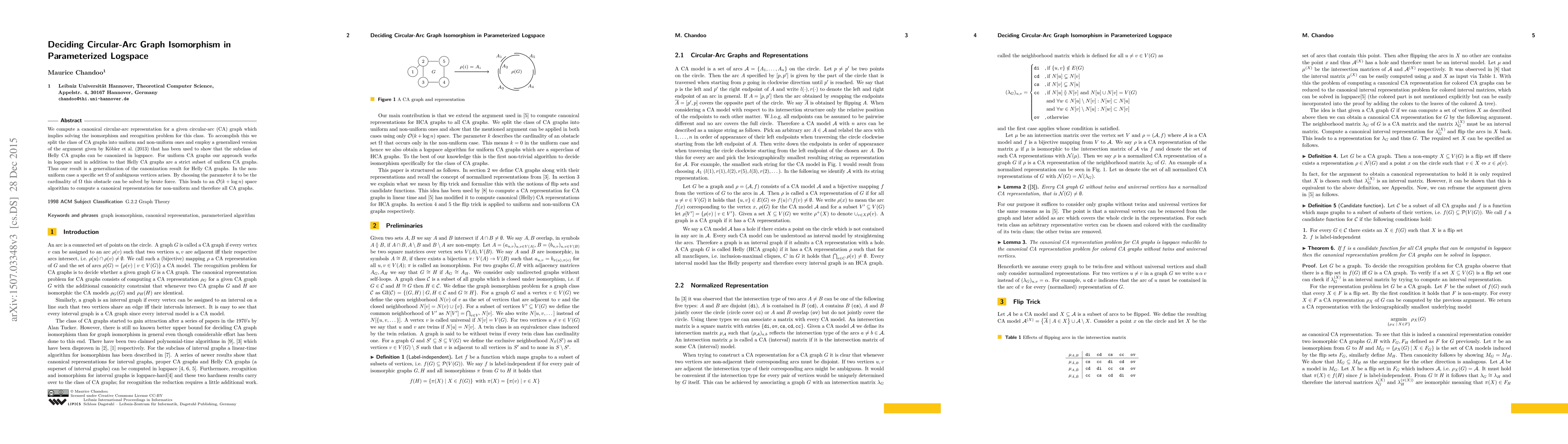 This paper presents a method for computing a canonical circular-arc representation for circular-arc graphs, solving both the isomorphism and recognition problem. For uniform CA graphs, the approach operates in parameterized logspace, extending the canonization result for Helly CA graphs. For non-uniform CA graphs, it employs brute force to handle ambiguous vertices, resulting in an O(k + log n) space algorithm.