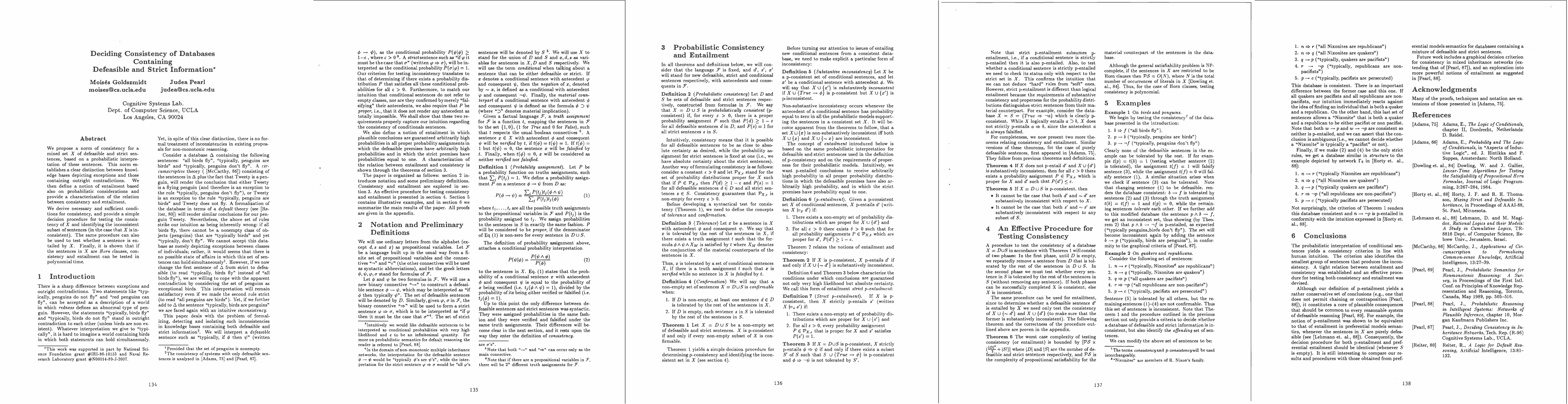 We propose a norm of consistency for a mixed set of defeasible and strict sentences, based on a probabilistic semantics. This norm establishes a clear distinction between knowledge bases depicting exceptions and those containing outright contradictions. We then define a notion of entailment based also on probabilistic considerations and provide a characterization of the relation between consistency and entailment. We derive necessary and sufficient conditions for consistency, and provide a simple decision procedure for testing consistency and deciding whether a sentence is entailed by a database. Finally, it is shown that if al1 sentences are Horn clauses, consistency and entailment can be tested in polynomial time.