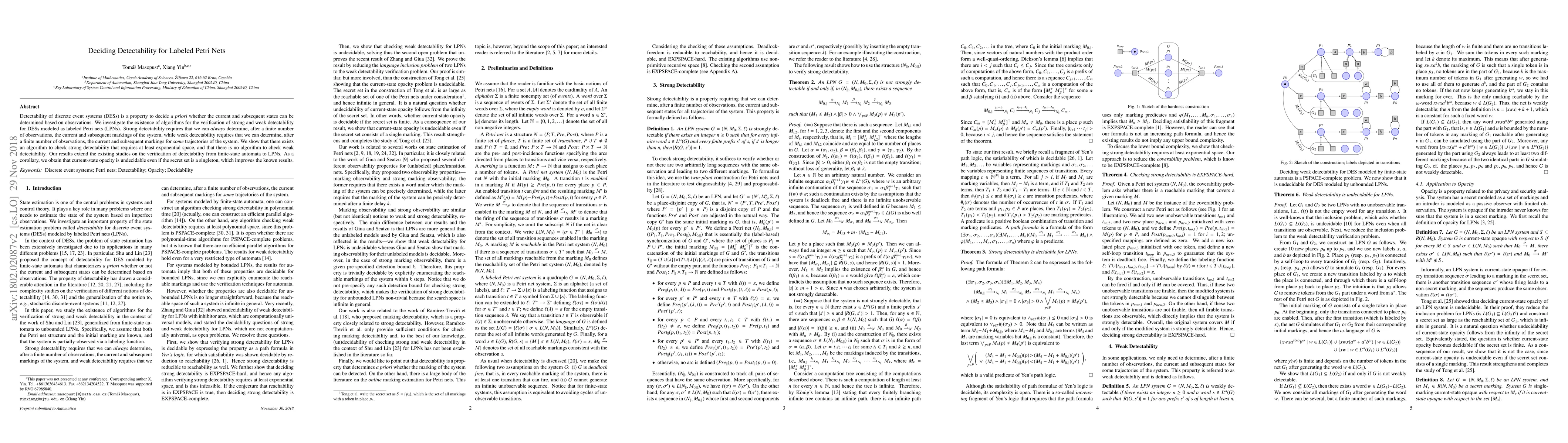This paper investigates the verification of strong and weak detectability in discrete event systems modeled by labeled Petri nets. It concludes that strong detectability is decidable, while weak detectability is undecidable, extending prior studies from finite-state automata to Petri nets.