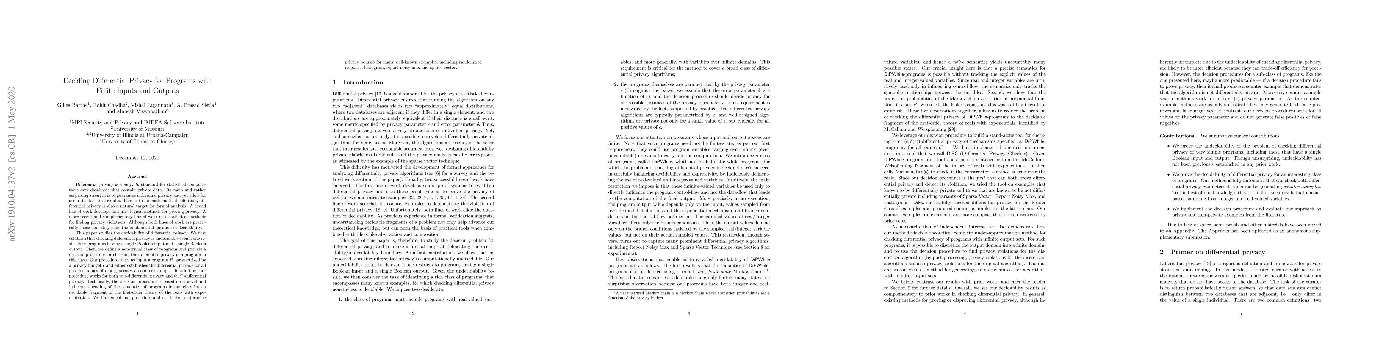 This paper proposes a decision procedure to check differential privacy for probabilistic computations, providing a rigorous method to prove or disprove individual privacy guarantees.