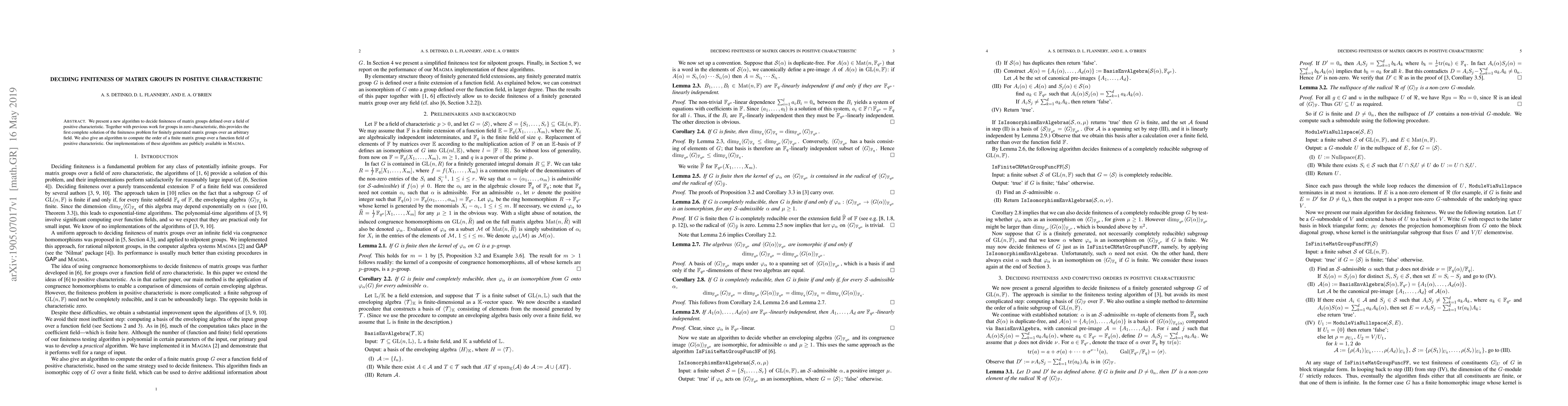 This paper introduces a new algorithm to determine if matrix groups over fields of positive characteristic are finite, completing the finiteness problem for finitely generated matrix groups over any field. The authors also provide an algorithm to compute the order of such finite matrix groups and offer MAGMA implementations publicly.
