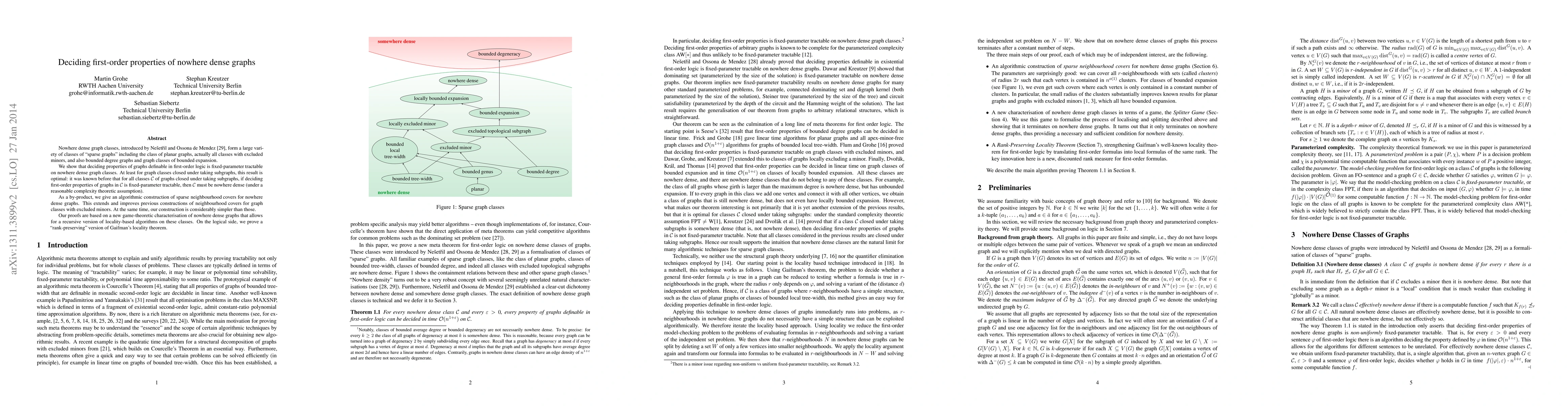 This paper demonstrates that deciding first-order properties in nowhere dense graph classes is fixed-parameter tractable, establishing an optimal result for classes closed under subgraphs. It also introduces a simpler algorithmic construction for sparse neighbourhood covers, leveraging a new game-theoretic characterisation of these graph classes.