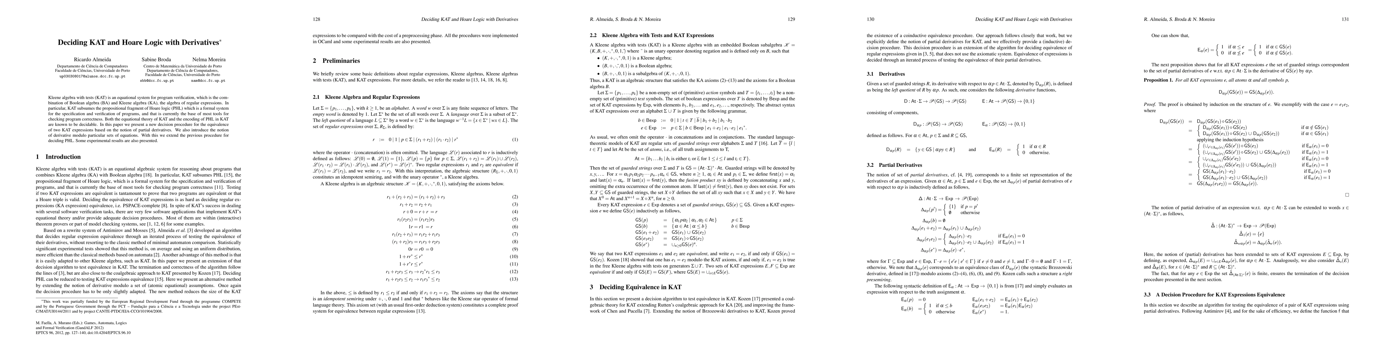 This paper introduces a novel decision procedure for Kleene Algebra with Tests (KAT) equivalence using partial derivatives, extending the existing method for Propositional Hoare Logic (PHL). Experimental results are presented, showcasing improvements in verification of program correctness.