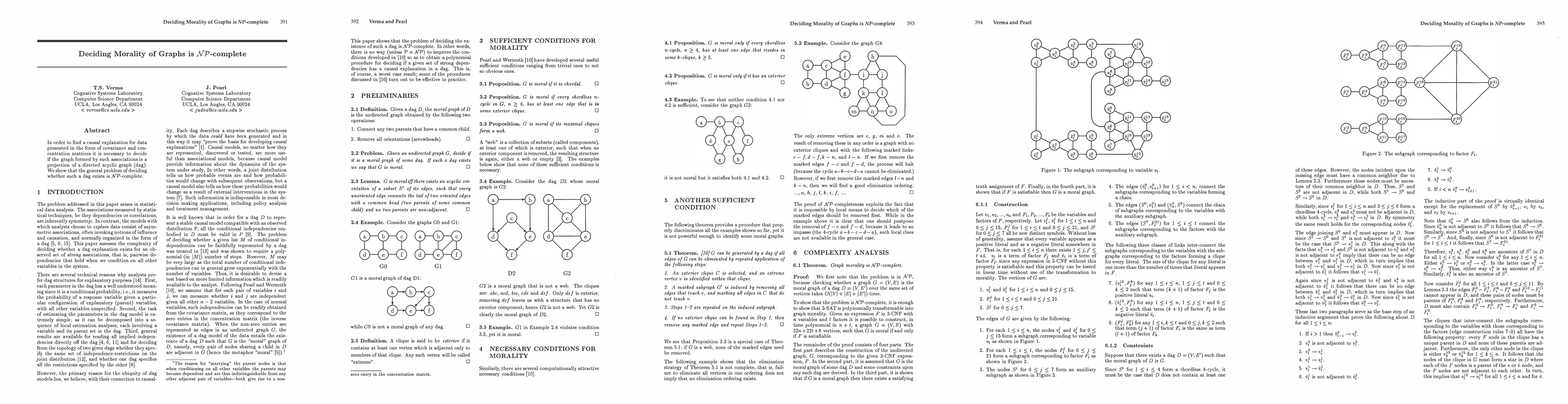 In order to find a causal explanation for data presented in the form of covariance and concentration matrices it is necessary to decide if the graph formed by such associations is a projection of a directed acyclic graph (dag). We show that the general problem of deciding whether such a dag exists is NP-complete.