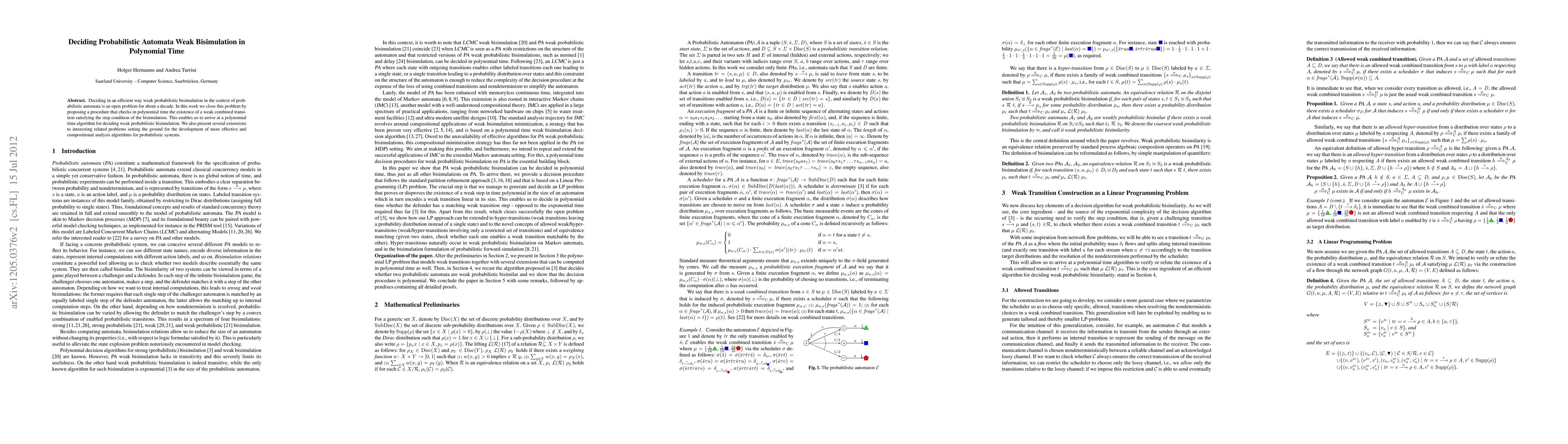 This paper proposes a polynomial-time procedure to decide weak probabilistic bisimulation for Probabilistic Automata, addressing a long-standing open problem. It also introduces new concepts like allowed weak combined and hyper-transitions, and equivalence matching, all of which can be verified in polynomial time, paving the way for advanced compositional analysis in probabilistic systems.