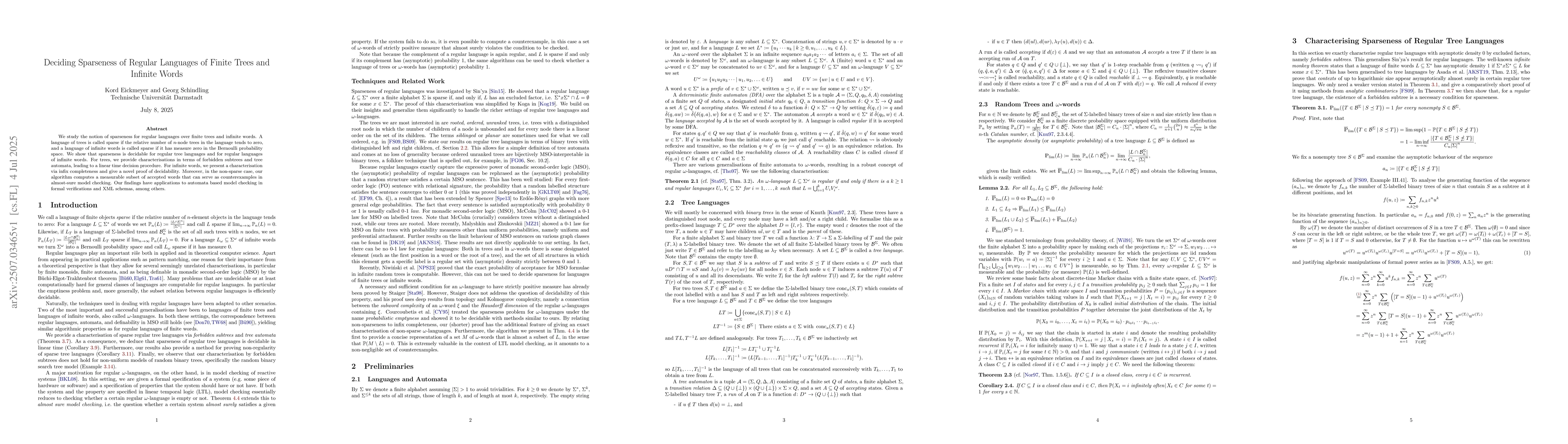 We study the notion of sparseness for regular languages over finite trees and infinite words. A language of trees is called sparse if the relative number of $n$-node trees in the language tends to zero, and a language of infinite words is called sparse if it has measure zero in the Bernoulli probability space. We show that sparseness is decidable for regular tree languages and for regular languages of infinite words. For trees, we provide characterisations in terms of forbidden subtrees and tree automata, leading to a linear time decision procedure. For infinite words, we present a characterisation via infix completeness and give a novel proof of decidability. Moreover, in the non-sparse case, our algorithm computes a measurable subset of accepted words that can serve as counterexamples in almost-sure model checking. Our findings have applications to automata based model checking in formal verifications and XML schemas, among others.