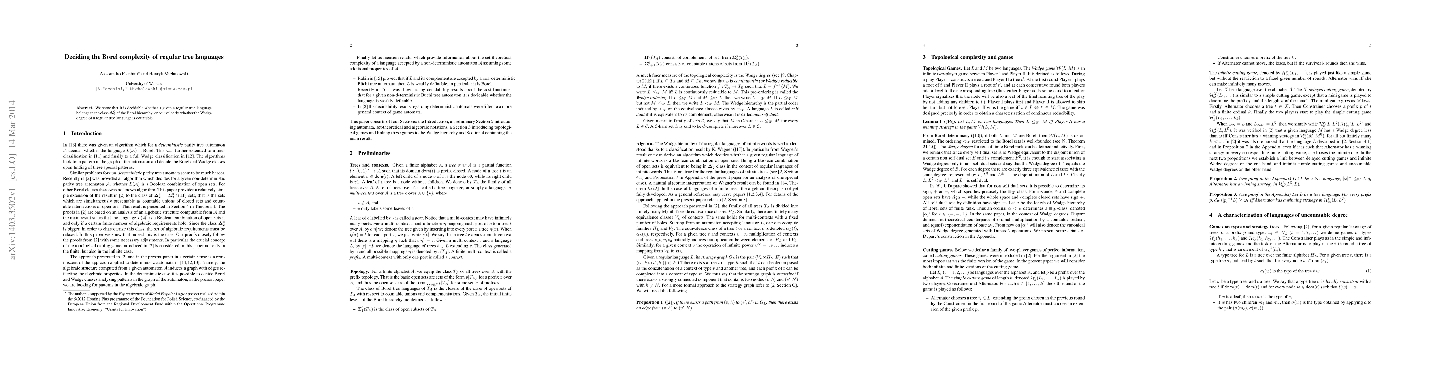 This paper demonstrates the decidability of determining whether a given regular tree language is within the ${\bf \Delta^0_2}$ class of the Borel hierarchy, thus establishing whether its Wadge degree is countable. The result provides a method to classify the complexity of such tree languages.