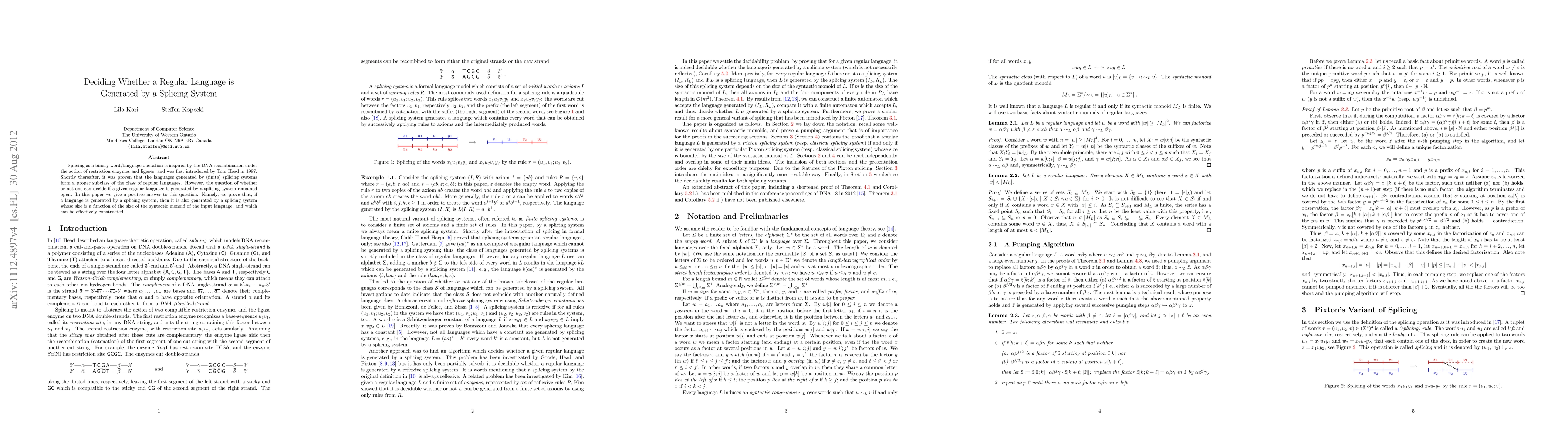 Researchers prove that a regular language can be generated by a splicing system whose size is related to the language's syntactic monoid, effectively solving a long-standing question in computational complexity theory.