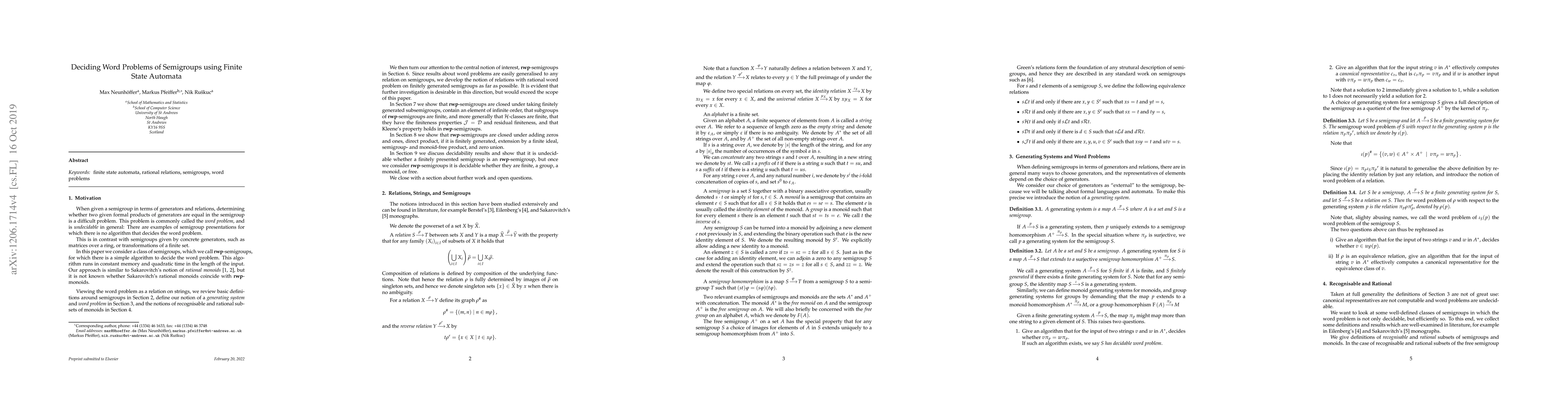 This paper explores how to solve word problems for certain types of mathematical structures called semigroups using finite state automata, with key findings including invariance under changes in the structure.
