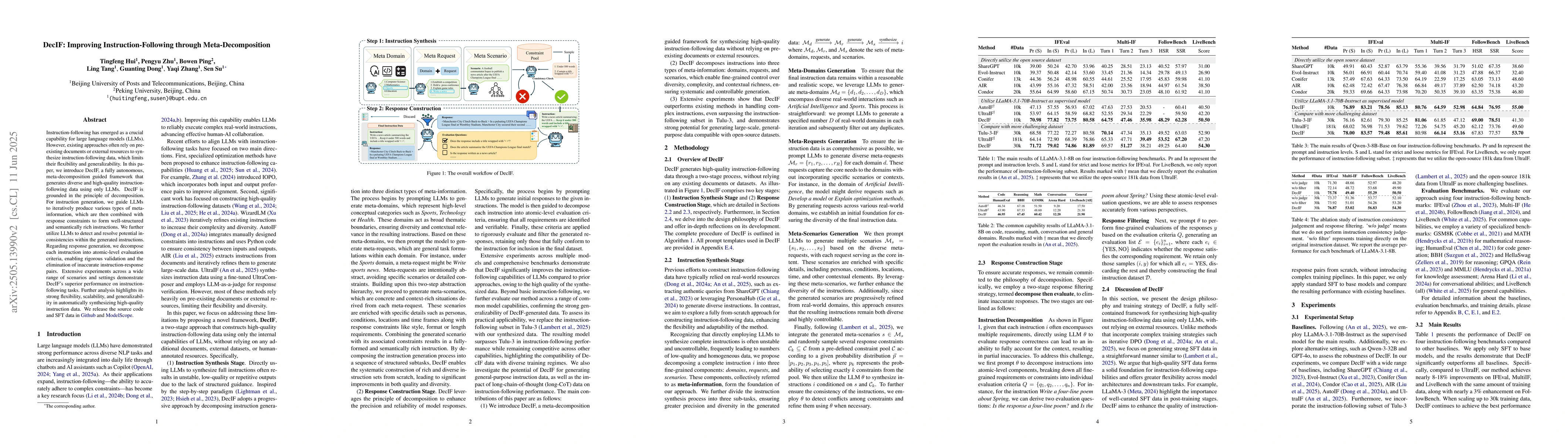 DecIF presents a novel, meta-decomposition guided framework for generating diverse and high-quality instruction-following data using only LLMs.