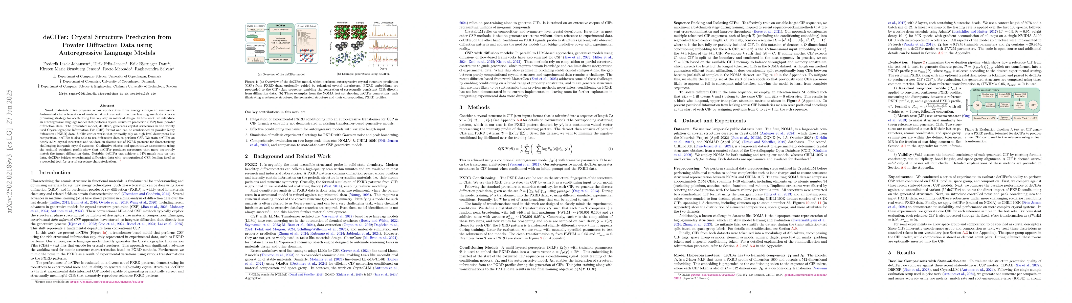 Novel materials drive progress across applications from energy storage to electronics. Automated characterization of material structures with machine learning methods offers a promising strategy for accelerating this key step in material design. In this work, we introduce an autoregressive language model that performs crystal structure prediction (CSP) from powder diffraction data. The presented model, deCIFer, generates crystal structures in the widely used Crystallographic Information File (CIF) format and can be conditioned on powder X-ray diffraction (PXRD) data. Unlike earlier works that primarily rely on high-level descriptors like composition, deCIFer is also able to use diffraction data to perform CSP. We train deCIFer on nearly 2.3M crystal structures and validate on diverse sets of PXRD patterns for characterizing challenging inorganic crystal systems. Qualitative checks and quantitative assessments using the residual weighted profile show that deCIFer produces structures that more accurately match the target diffraction data. Notably, deCIFer can achieve a 94% match rate on test data. deCIFer bridges experimental diffraction data with computational CSP, lending itself as a powerful tool for crystal structure characterization.
