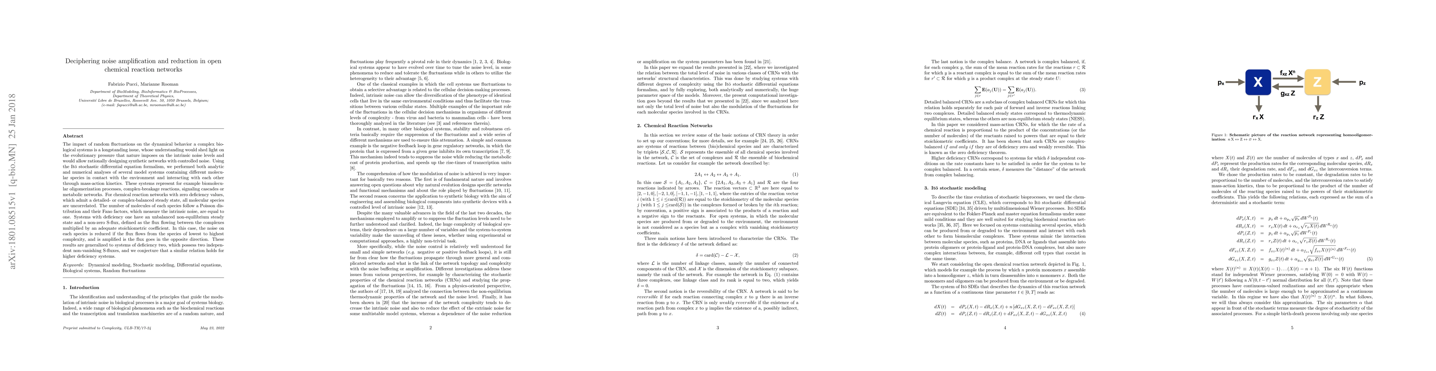 Researchers studied how random fluctuations affect complex biological systems, finding that noise is reduced when flux flows from simpler to more complex species and amplified in the opposite direction.