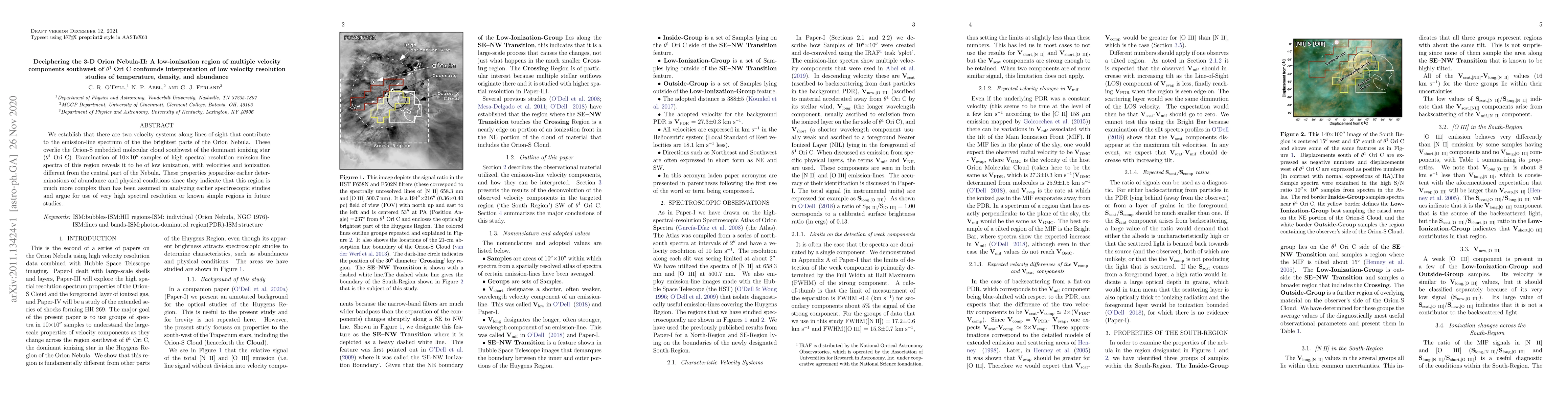 This paper identifies two velocity systems in the low-ionization region southwest of Theta1OriC in the Orion Nebula, complicating previous interpretations of its temperature, density, and abundance. High spectral resolution spectra reveal this region's complexity, challenging earlier assumptions and suggesting the need for more precise future studies.