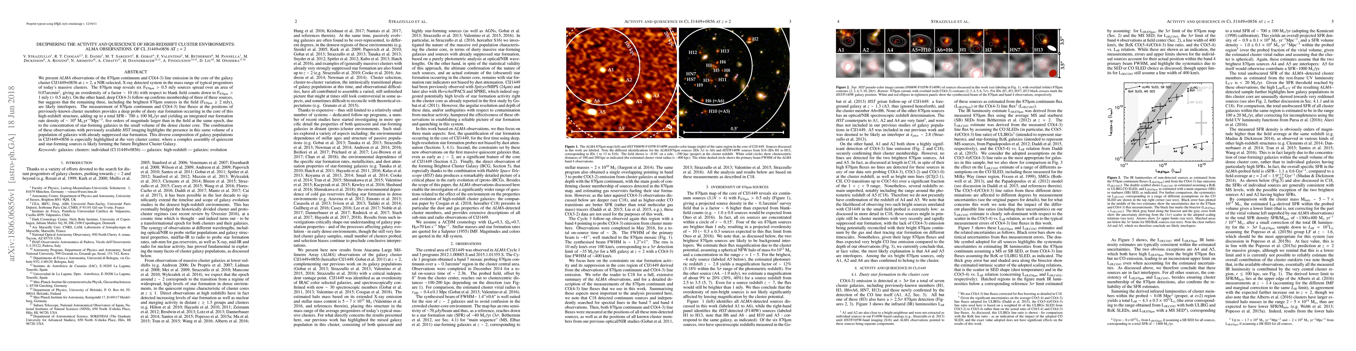 This study uses ALMA to observe the high-redshift cluster ClJ1449+0856 at z=2, revealing a significant overdensity of star-forming galaxies in its core compared to blank fields. The observations indicate a total star formation rate of ~700 M$_{\odot}$/yr, highlighting the diverse galaxy populations, including both star-forming and quiescent galaxies, within the cluster.
