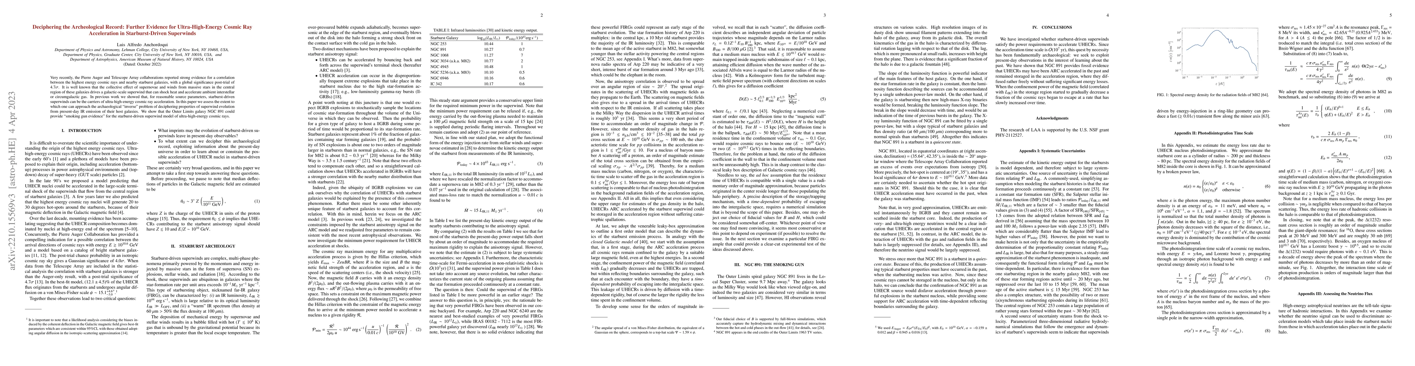 Very recently, the Pierre Auger and Telescope Array collaborations reported strong evidence for a correlation between the highest energy cosmic rays and nearby starburst galaxies, with a global significance post-trial of $4.6\sigma$. It is well known that the collective effect of supernovae and winds from massive stars in the central region of these galaxies drives a galactic-scale superwind that can shock heat and accelerate ambient interstellar or circumgalactic gas. In previous work we showed that, for reasonable source parameters, starburst-driven superwinds can be the carriers of ultra-high-energy cosmic ray acceleration. In this paper we assess the extent to which one can approach the archaeological ``inverse'' problem of deciphering properties of superwind evolution from present-day IR emission of their host galaxies. We show that the Outer Limits galaxy NGC 891 could provide ``smoking gun evidence'' for the starburst-driven superwind model of ultra-high-energy cosmic rays.