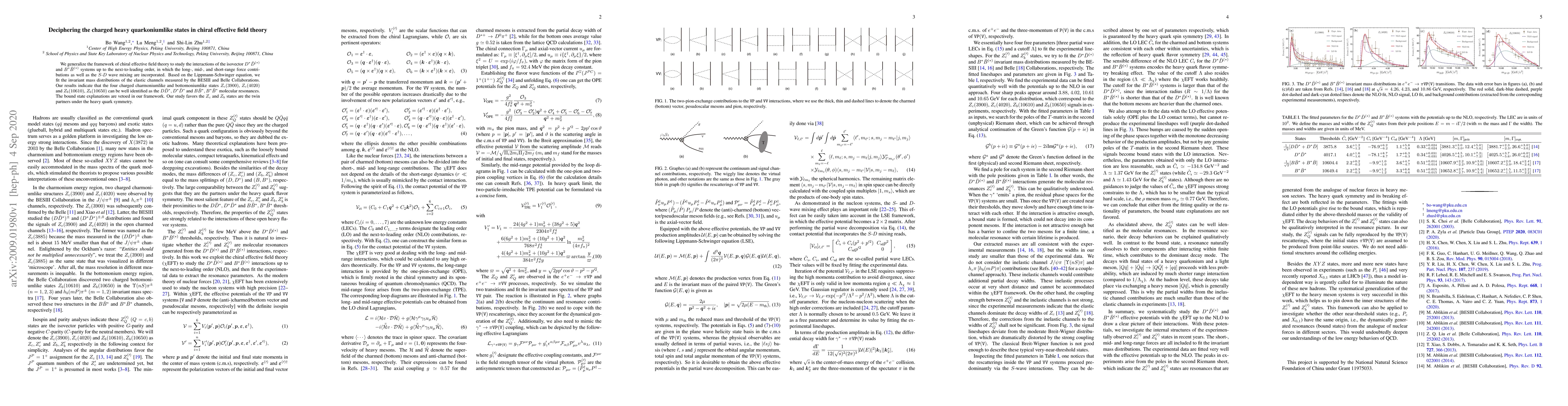 We generalize the framework of chiral effective field theory to study the interactions of the isovector $D^\ast\bar{D}^{(\ast)}$ and $B^\ast\bar{B}^{(\ast)}$ systems up to the next-to-leading order, in which the long-, mid-, and short-range force contributions as well as the $S$-$D$ wave mixing are incorporated. Based on the Lippmann-Schwinger equation, we fit the invariant mass distributions of the elastic channels measured by the BESIII and Belle Collaborations. Our results indicate that the four charged charmoniumlike and bottomoniumlike states $Z_c(3900)$, $Z_c(4020)$ and $Z_b(10610)$, $Z_b(10650)$ can be well identified as the $D\bar{D}^{\ast},D^\ast\bar{D}^{\ast}$ and $B\bar{B}^{\ast},B^\ast\bar{B}^{\ast}$ molecular resonances. The bound state explanations are vetoed in our framework. Our study favors the $Z_c$ and $Z_b$ states are the twin partners under the heavy quark symmetry.
