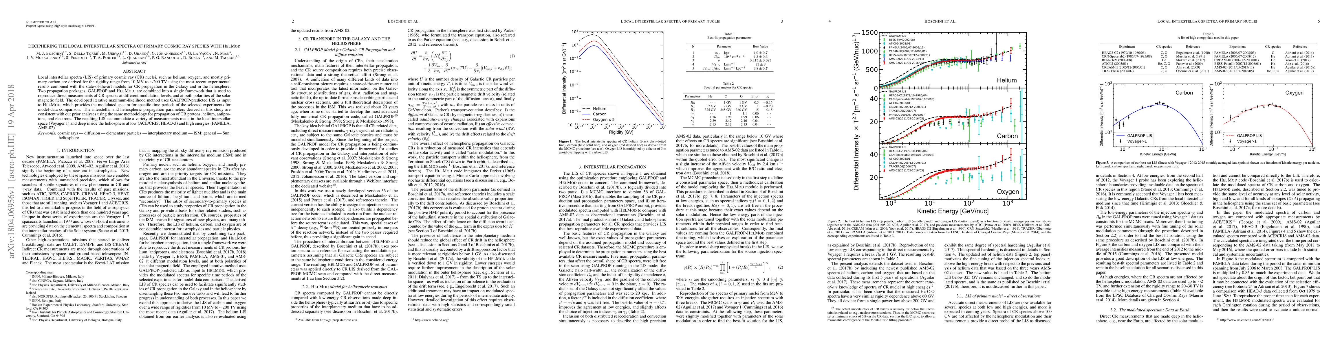 This paper derives local interstellar spectra of primary cosmic ray nuclei using HelMod and GALPROP models, focusing on helium, oxygen, and carbon. The study combines recent experimental data and advanced propagation models to achieve consistency with previous analyses and measurements across various energy levels.