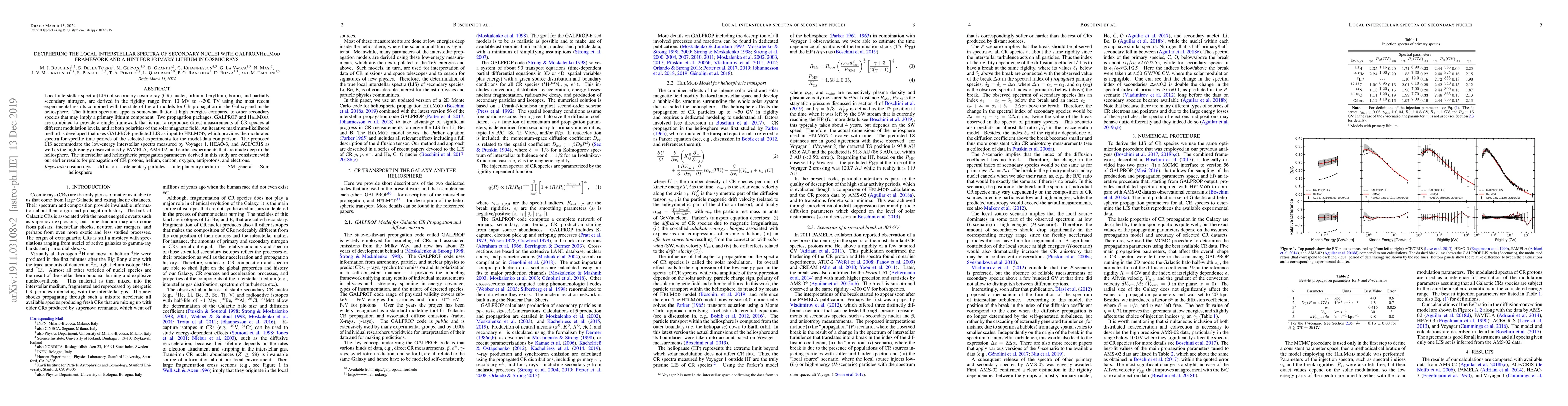This paper uses the GALPROP/HelMod framework to derive local interstellar spectra of secondary cosmic ray nuclei, finding a flatter high-energy lithium spectrum suggesting a primary lithium component. The study combines two propagation models to fit experimental data across various energy ranges and solar magnetic field polarities.