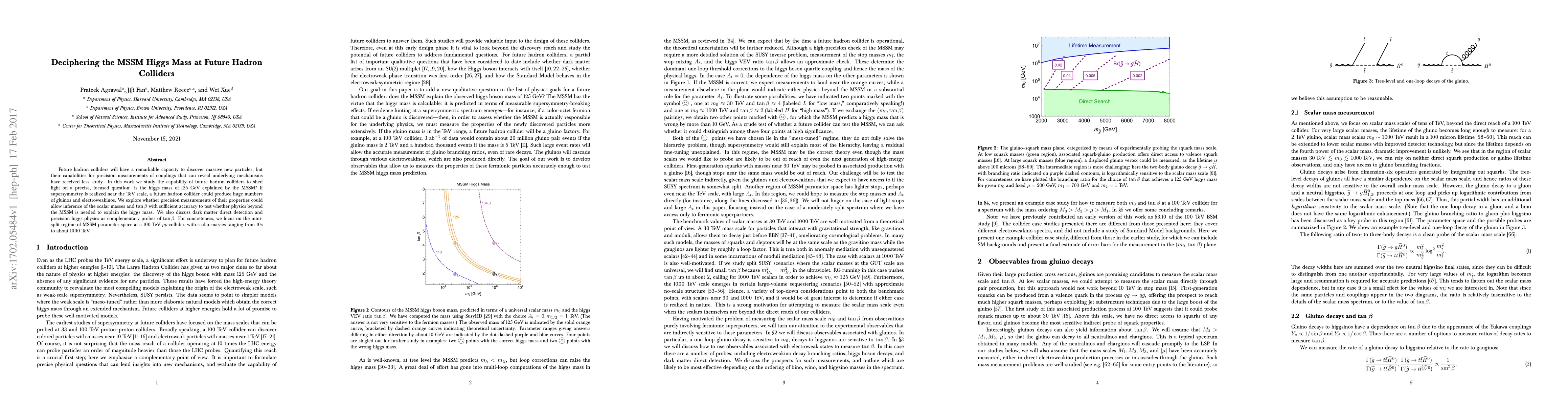 Future hadron colliders will have a remarkable capacity to discover massive new particles, but their capabilities for precision measurements of couplings that can reveal underlying mechanisms have received less study. In this work we study the capability of future hadron colliders to shed light on a precise, focused question: is the higgs mass of 125 GeV explained by the MSSM? If supersymmetry is realized near the TeV scale, a future hadron collider could produce huge numbers of gluinos and electroweakinos. We explore whether precision measurements of their properties could allow inference of the scalar masses and $\tan \beta$ with sufficient accuracy to test whether physics beyond the MSSM is needed to explain the higgs mass. We also discuss dark matter direct detection and precision higgs physics as complementary probes of $\tan \beta$. For concreteness, we focus on the mini-split regime of MSSM parameter space at a 100 TeV $pp$ collider, with scalar masses ranging from 10s to about 1000 TeV.