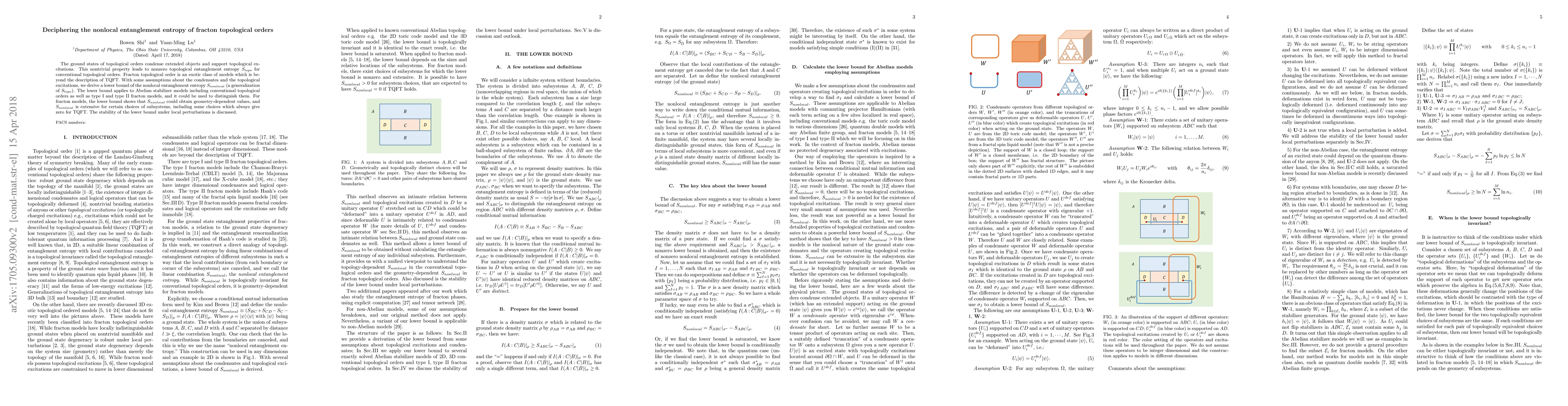 The ground states of topological orders condense extended objects and support topological excitations. This nontrivial property leads to nonzero topological entanglement entropy $S_{topo}$ for conventional topological orders. Fracton topological order is an exotic class of models which is beyond the description of TQFT. With some assumptions about the condensates and the topological excitations, we derive a lower bound of the nonlocal entanglement entropy $S_{nonlocal}$ (a generalization of $S_{topo}$). The lower bound applies to Abelian stabilizer models including conventional topological orders as well as type \Rom{1} and type \Rom{2} fracton models, and it could be used to distinguish them. For fracton models, the lower bound shows that $S_{nonlocal}$ could obtain geometry-dependent values, and $S_{nonlocal}$ is extensive for certain choices of subsystems, including some choices which always give zero for TQFT. The stability of the lower bound under local perturbations is discussed.