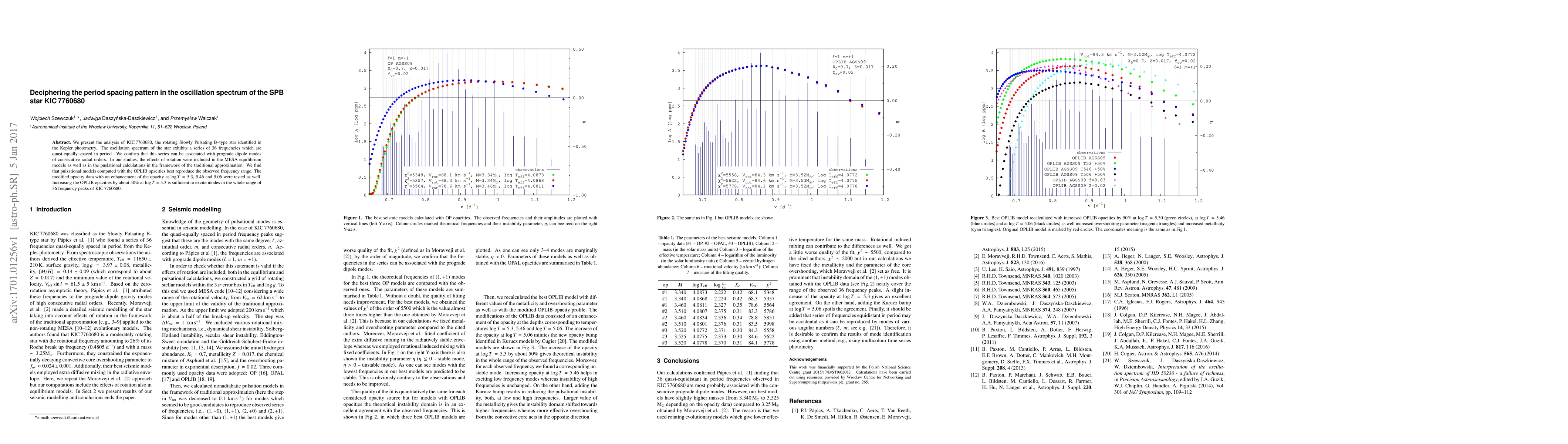This paper analyzes the oscillation spectrum of KIC 7760680, a Slowly Pulsating B-type star, revealing 36 quasi-equally spaced frequencies linked to prograde dipole modes. Models using OPLIB opacities and modified to enhance certain temperatures best match the observed frequencies.