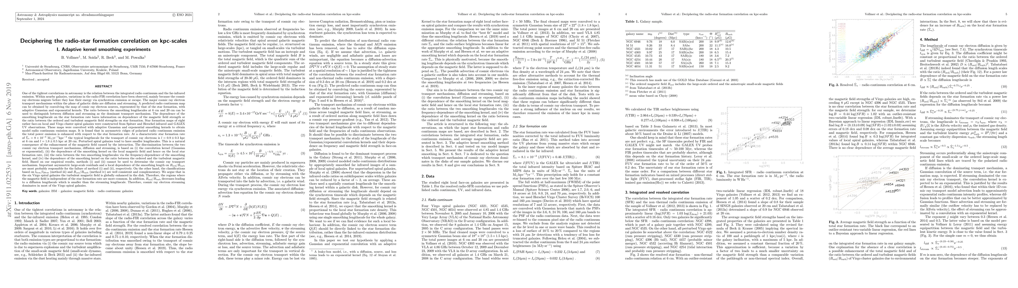 This study investigates the radio-FIR correlation in nearby galaxies, using adaptive kernel smoothing to model cosmic ray electron transport mechanisms. Findings suggest that diffusion and streaming dominate in different regions, with typical lengthscales of 0.9 kpc at 6cm and 1.8 kpc at 20cm, and perturbed spiral galaxies exhibit smaller lengthscales due to enhanced magnetic fields.
