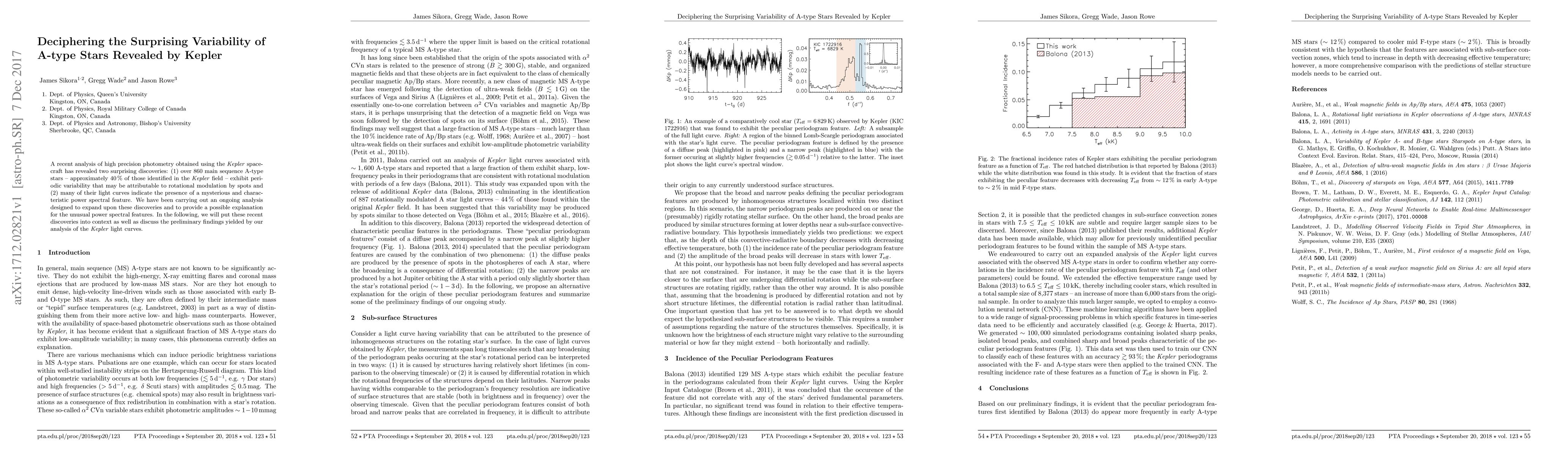This paper reveals that over 40% of A-type stars observed by Kepler show periodic variability likely due to rotational modulation by spots, and many exhibit a mysterious power spectral feature. The authors are exploring these findings to understand the unusual spectral characteristics.