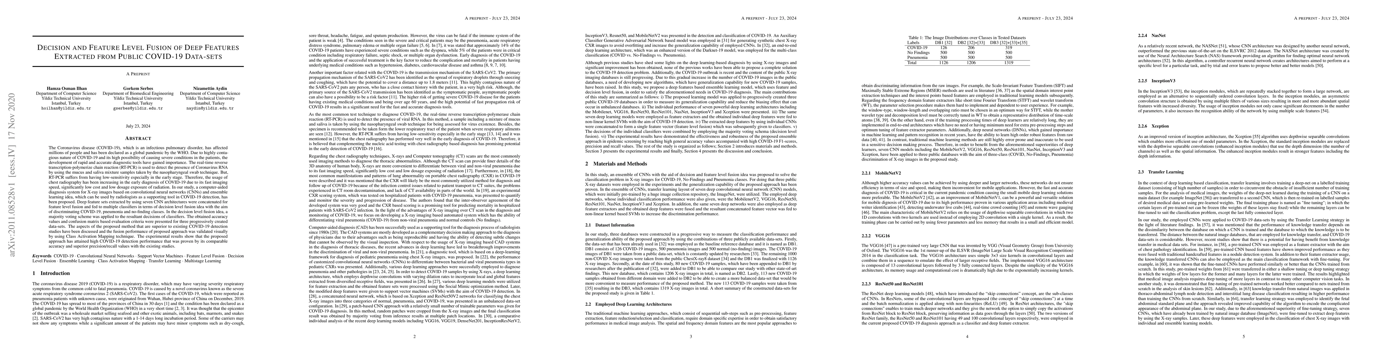 The Coronavirus (COVID-19), which is an infectious pulmonary disorder, has affected millions of people and has been declared as a global pandemic by the WHO. Due to highly contagious nature of COVID-19 and its high possibility of causing severe conditions in the patients, the development of rapid and accurate diagnostic tools have gained importance. The real-time reverse transcription-polymerize chain reaction (RT-PCR) is used to detect the presence of Coronavirus RNA by using the mucus and saliva mixture samples. But, RT-PCR suffers from having low-sensitivity especially in the early stage. Therefore, the usage of chest radiography has been increasing in the early diagnosis of COVID-19 due to its fast imaging speed, significantly low cost and low dosage exposure of radiation. In our study, a computer-aided diagnosis system for X-ray images based on convolutional neural networks (CNNs), which can be used by radiologists as a supporting tool in COVID-19 detection, has been proposed. Deep feature sets extracted by using CNNs were concatenated for feature level fusion and fed to multiple classifiers in terms of decision level fusion idea with the aim of discriminating COVID-19, pneumonia and no-finding classes. In the decision level fusion idea, a majority voting scheme was applied to the resultant decisions of classifiers. The obtained accuracy values and confusion matrix based evaluation criteria were presented for three progressively created data-sets. The aspects of the proposed method that are superior to existing COVID-19 detection studies have been discussed and the fusion performance of proposed approach was validated visually by using Class Activation Mapping technique. The experimental results show that the proposed approach has attained high COVID-19 detection performance that was proven by its comparable accuracy and superior precision/recall values with the existing studies.