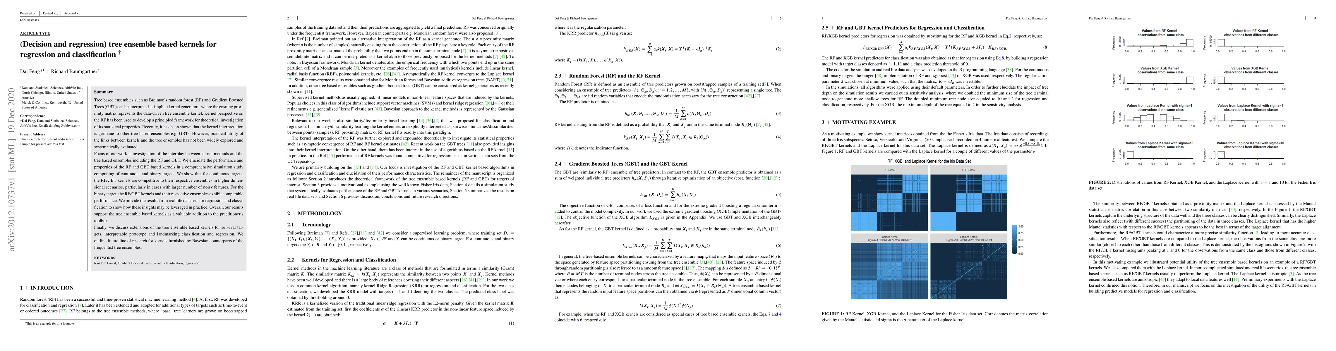 The paper investigates the interplay between kernel methods and tree-based ensembles, specifically focusing on Random Forest (RF) and Gradient Boosted Trees (GBT). It evaluates the performance and properties of RF and GBT-based kernels through a comprehensive simulation study involving continuous and binary targets.