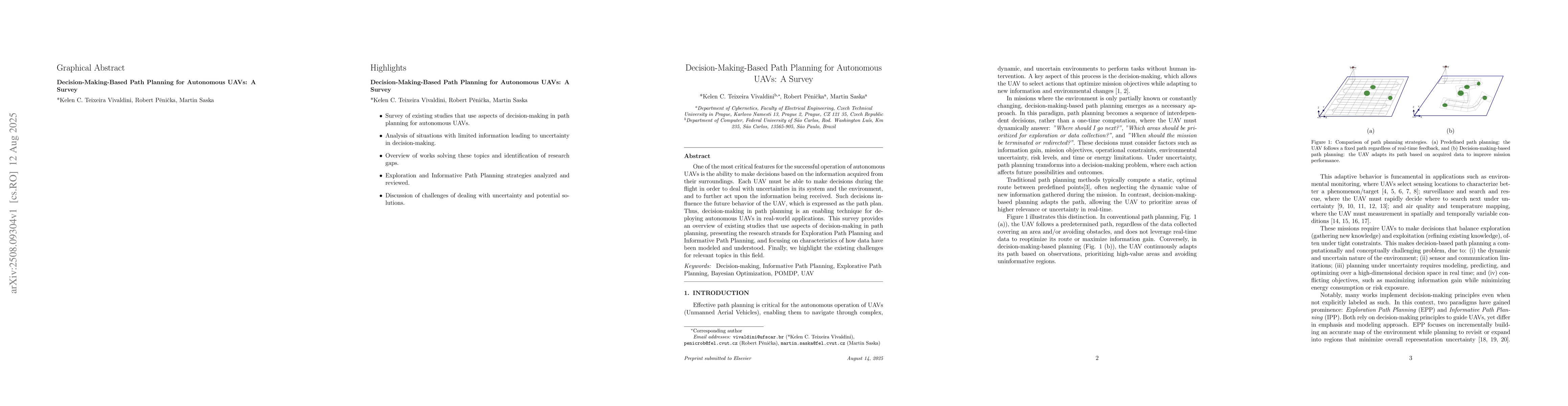 One of the most critical features for the successful operation of autonomous UAVs is the ability to make decisions based on the information acquired from their surroundings. Each UAV must be able to make decisions during the flight in order to deal with uncertainties in its system and the environment, and to further act upon the information being received. Such decisions influence the future behavior of the UAV, which is expressed as the path plan. Thus, decision-making in path planning is an enabling technique for deploying autonomous UAVs in real-world applications. This survey provides an overview of existing studies that use aspects of decision-making in path planning, presenting the research strands for Exploration Path Planning and Informative Path Planning, and focusing on characteristics of how data have been modeled and understood. Finally, we highlight the existing challenges for relevant topics in this field.