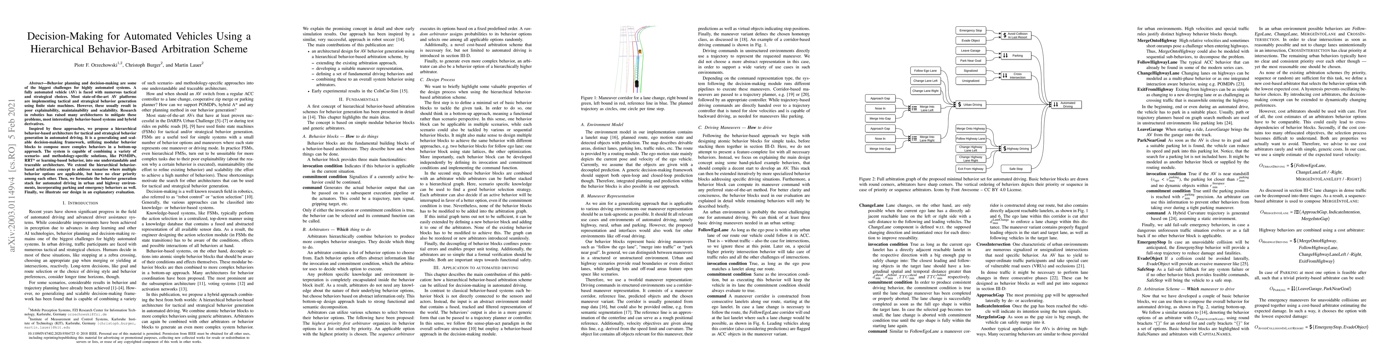This paper proposes a hierarchical behavior-based arbitration scheme for decision-making in automated vehicles, aiming to improve explainability, maintainability, and scalability over traditional finite state machine methods. The framework utilizes modular behavior blocks to create a scalable and understandable architecture for tactical and strategic behavior generation in urban and highway environments.