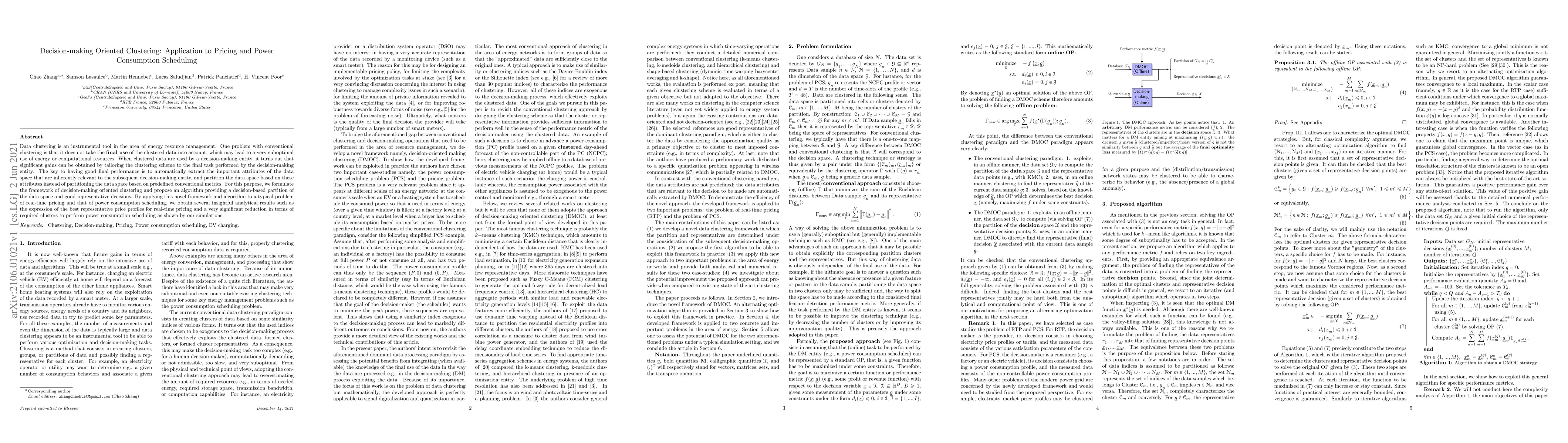 This paper introduces a decision-making oriented clustering framework that optimizes clustering based on the final use of the data, leading to better energy and resource management. The proposed algorithm tailors data partitioning to the specific decision-making task, achieving significant improvements in real-time pricing and power consumption scheduling.