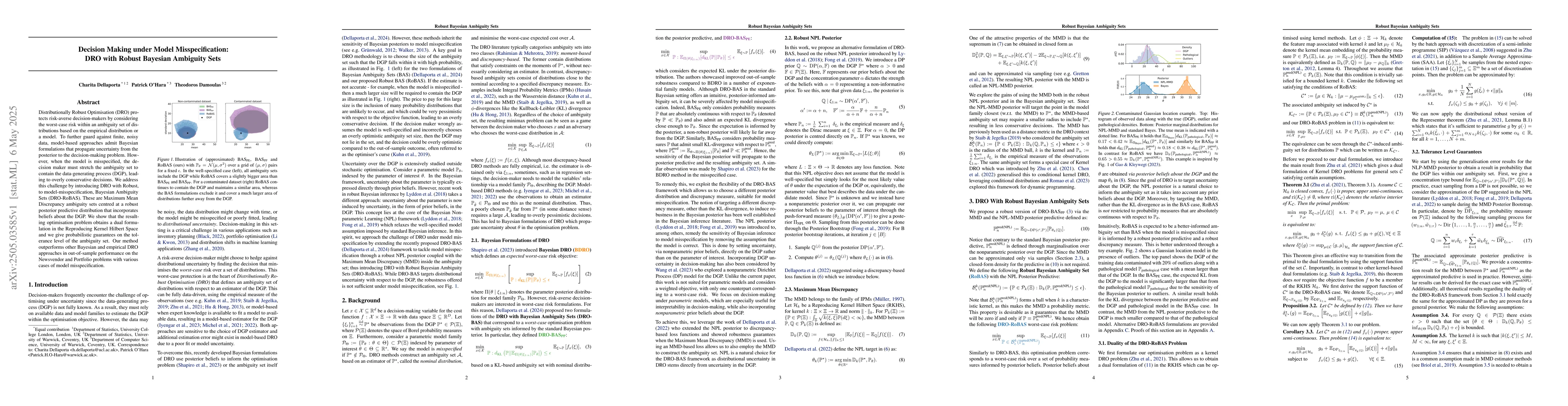 Distributionally Robust Optimisation (DRO) protects risk-averse decision-makers by considering the worst-case risk within an ambiguity set of distributions based on the empirical distribution or a model. To further guard against finite, noisy data, model-based approaches admit Bayesian formulations that propagate uncertainty from the posterior to the decision-making problem. However, when the model is misspecified, the decision maker must stretch the ambiguity set to contain the data-generating process (DGP), leading to overly conservative decisions. We address this challenge by introducing DRO with Robust, to model misspecification, Bayesian Ambiguity Sets (DRO-RoBAS). These are Maximum Mean Discrepancy ambiguity sets centred at a robust posterior predictive distribution that incorporates beliefs about the DGP. We show that the resulting optimisation problem obtains a dual formulation in the Reproducing Kernel Hilbert Space and we give probabilistic guarantees on the tolerance level of the ambiguity set. Our method outperforms other Bayesian and empirical DRO approaches in out-of-sample performance on the Newsvendor and Portfolio problems with various cases of model misspecification.