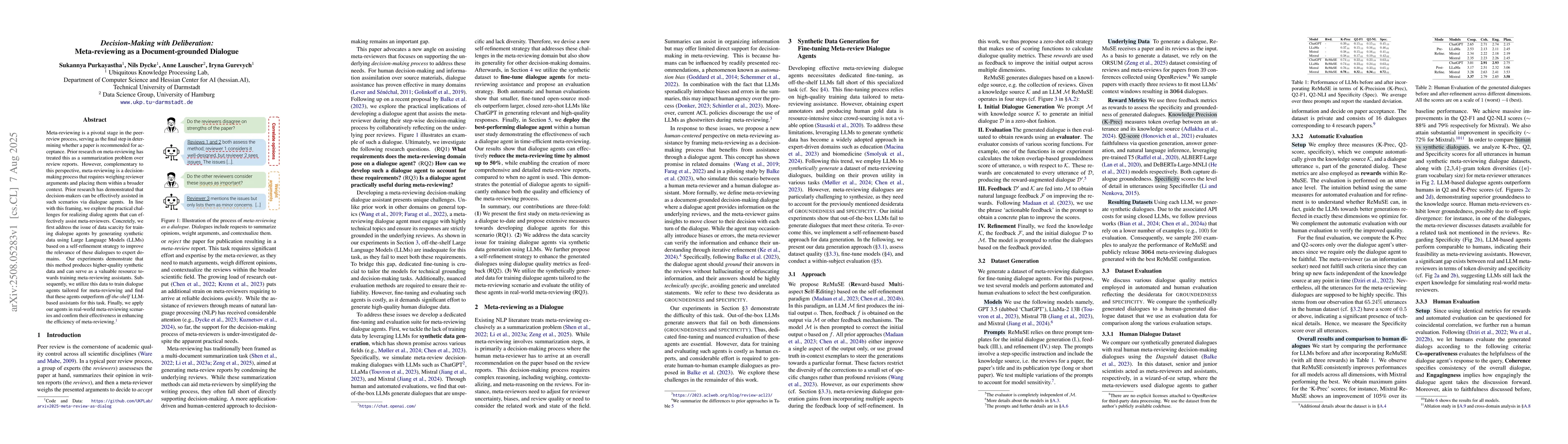 Meta-reviewing is a pivotal stage in the peer-review process, serving as the final step in determining whether a paper is recommended for acceptance. Prior research on meta-reviewing has treated this as a summarization problem over review reports. However, complementary to this perspective, meta-reviewing is a decision-making process that requires weighing reviewer arguments and placing them within a broader context. Prior research has demonstrated that decision-makers can be effectively assisted in such scenarios via dialogue agents. In line with this framing, we explore the practical challenges for realizing dialog agents that can effectively assist meta-reviewers. Concretely, we first address the issue of data scarcity for training dialogue agents by generating synthetic data using Large Language Models (LLMs) based on a self-refinement strategy to improve the relevance of these dialogues to expert domains. Our experiments demonstrate that this method produces higher-quality synthetic data and can serve as a valuable resource towards training meta-reviewing assistants. Subsequently, we utilize this data to train dialogue agents tailored for meta-reviewing and find that these agents outperform \emph{off-the-shelf} LLM-based assistants for this task. Finally, we apply our agents in real-world meta-reviewing scenarios and confirm their effectiveness in enhancing the efficiency of meta-reviewing.\footnote{Code and Data: https://github.com/UKPLab/arxiv2025-meta-review-as-dialog