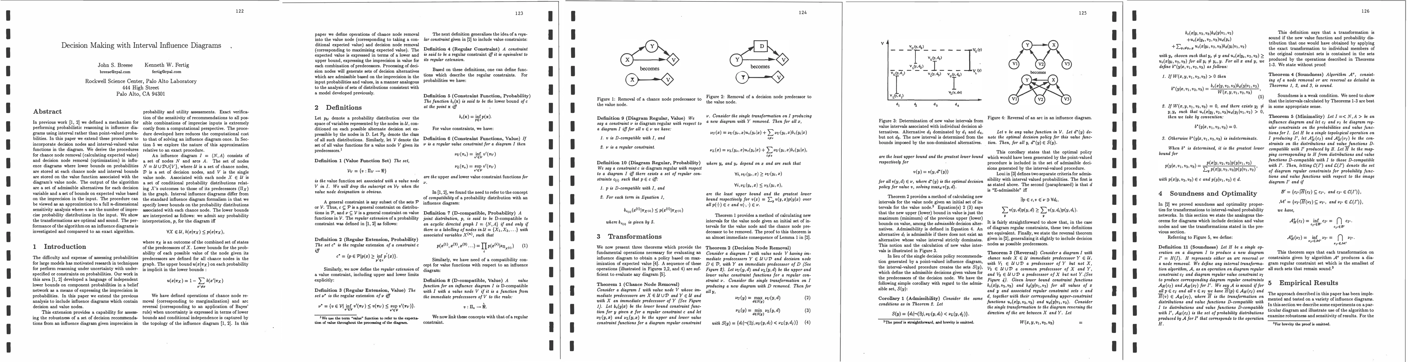 This paper extends interval-based probabilistic reasoning in influence diagrams to include decision nodes and interval-valued value functions, providing procedures for chance and decision node removal. The algorithm outputs admissible decision alternatives and bounds on expected value, demonstrating optimal and sound transformations.