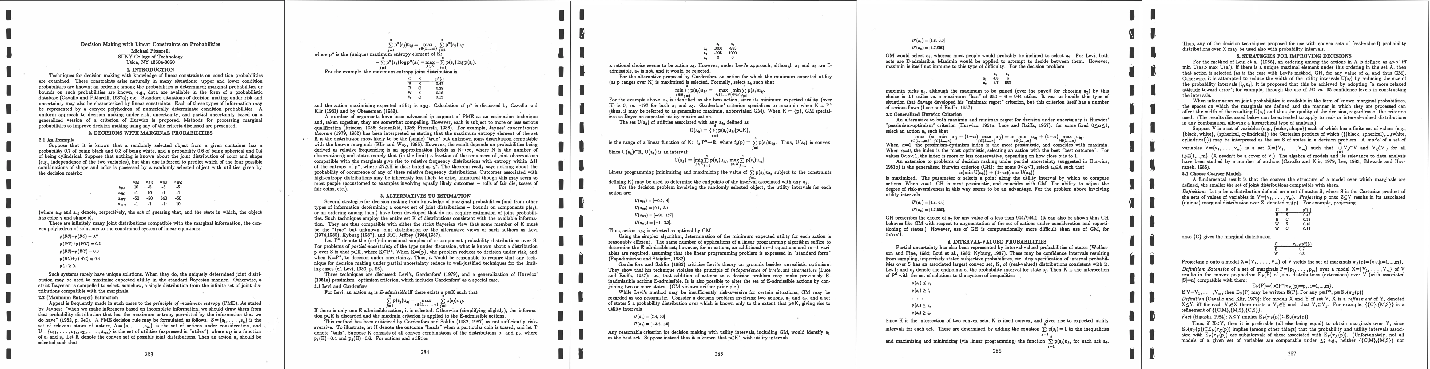 This paper examines decision-making techniques under linear constraints on conditional probabilities, proposing a generalized Hurwicz criterion approach. It addresses various constraints such as known bounds and orderings of probabilities, and introduces methods to enhance decision-making using marginal probability processing.