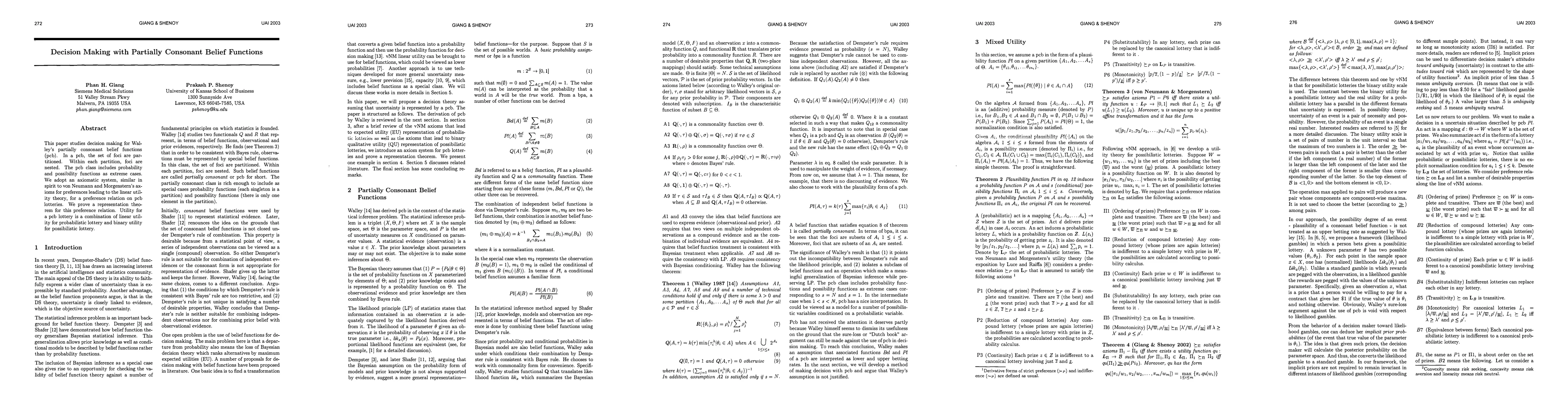 This paper proposes an axiomatic approach to decision making using partially consonant belief functions, representing utility as a blend of probabilistic and possibilistic components, and proves a representation theorem for the preference relation on these belief function lotteries.
