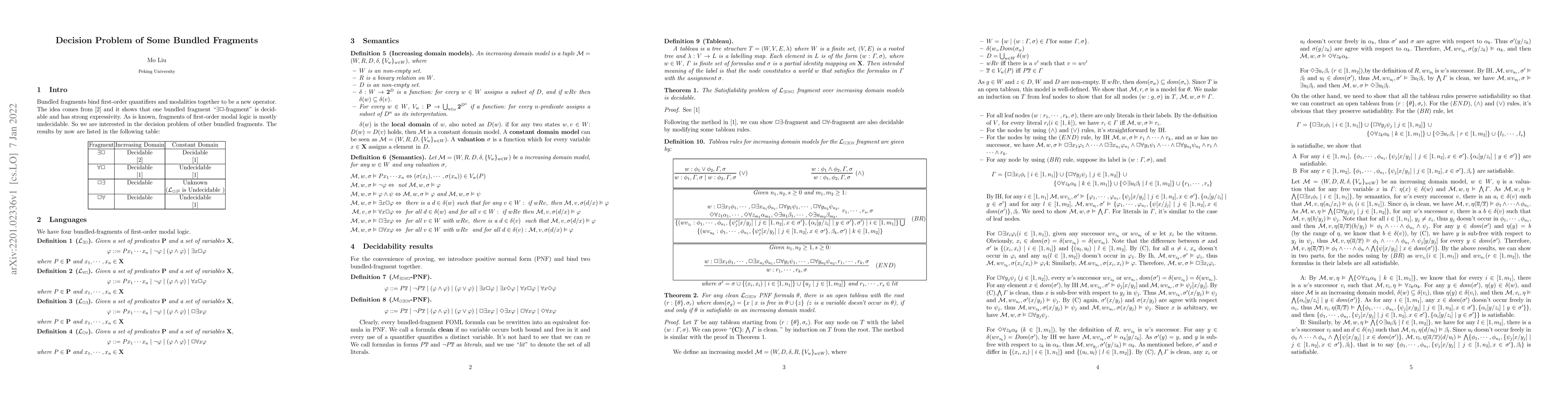 Over increasing domain interpretations, \exists\Box and \forall\Box bundled fragments are decidable and over constant domain interpretations, \exists\Box bundled fragment is decidable while \forall\Box bundled fragment is undecidable. Based on the existing results,we show that over increasing domain interpretations, \Box\exists and \Box\forall bundled fragments are decidable as well. On the other hand, over constant domain interpretations, \Box\forall bundled fragment is undecidable and \Box\exists^2 bundled fragment, an extension of \Box\exists bundled fragment, is undecidable neither.