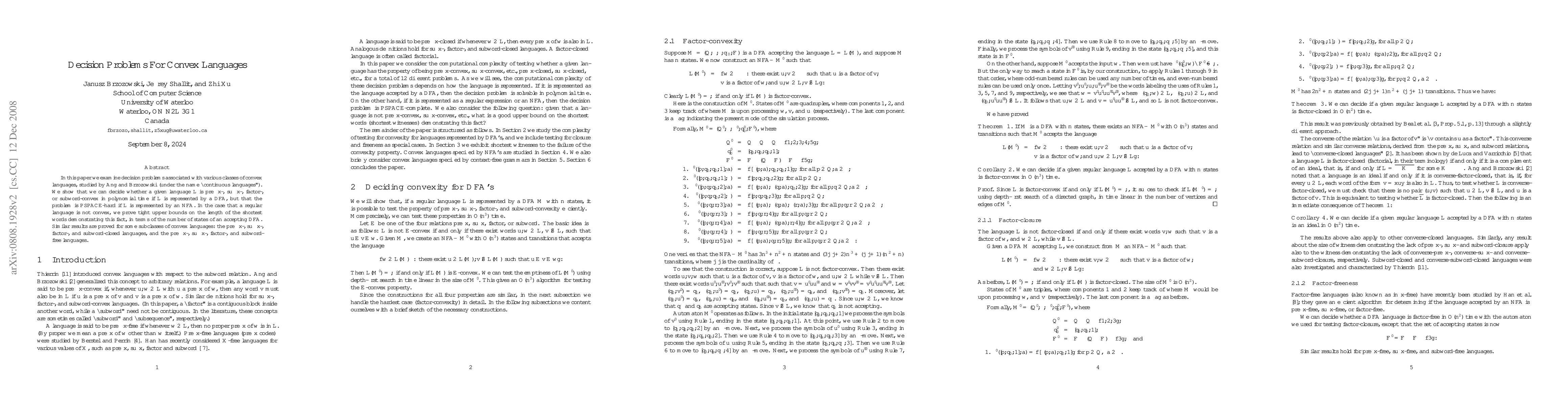 This paper investigates decision problems for convex languages, showing that they can be solved in polynomial time for DFAs but are PSPACE-hard for NFAs. It also establishes tight bounds on non-convexity for regular languages based on the number of states in the DFA.
