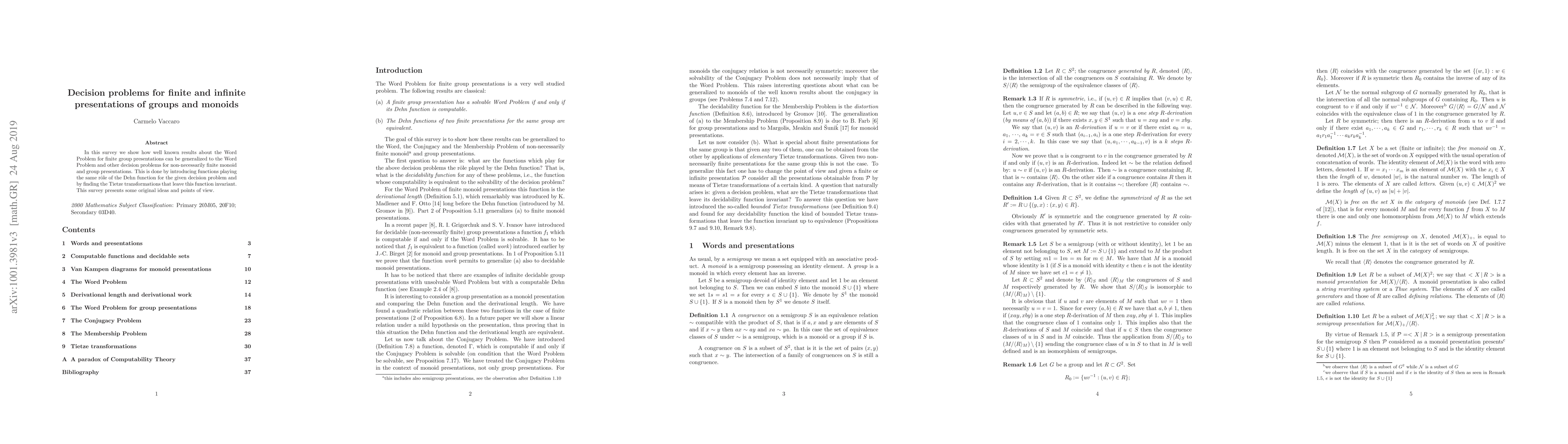 In this survey we show how well known results about the Word Problem for finite group presentations can be generalized to the Word Problem and other decision problems for non-necessarily finite monoid and group presentations. This is done by introducing functions playing the same role of the Dehn function for the given decision problem and by finding the Tietze transformations that leave this function invariant. This survey presents some original ideas and points of view.