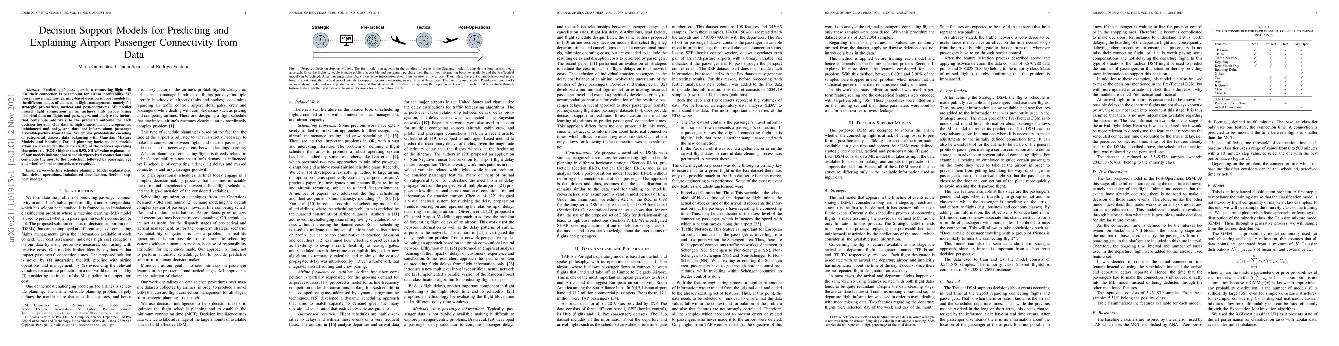 Predicting if passengers in a connecting flight will lose their connection is paramount for airline profitability. We present novel machine learning-based decision support models for the different stages of connection flight management, namely for strategic, pre-tactical, tactical and post-operations. We predict missed flight connections in an airline's hub airport using historical data on flights and passengers, and analyse the factors that contribute additively to the predicted outcome for each decision horizon. Our data is high-dimensional, heterogeneous, imbalanced and noisy, and does not inform about passenger arrival/departure transit time. We employ probabilistic encoding of categorical classes, data balancing with Gaussian Mixture Models, and boosting. For all planning horizons, our models attain an AUC of the ROC higher than 0.93. SHAP value explanations of our models indicate that scheduled/perceived connection times contribute the most to the prediction, followed by passenger age and whether border controls are required.